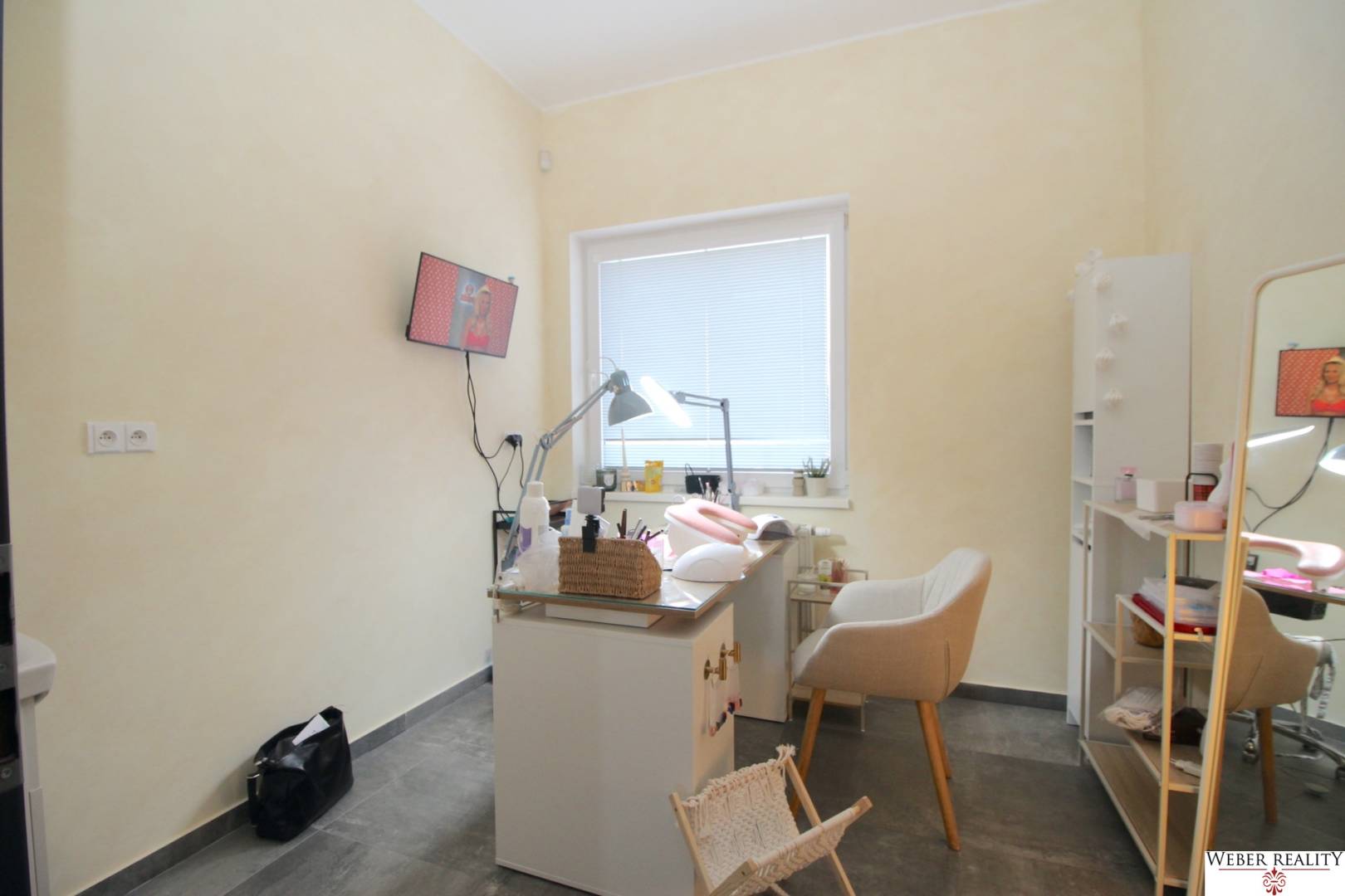 Priestor je riešený vstupom, kde sa nachádza recepcia, dvomi miestnosťami, kde sú umiestnené solária, kuchynkou, wc a miestnosťou, kde je kancelária (momentálne nechtové štúdio). Náklady na prevádzku sú nízke, vďaka vlastnému kúreniu (plynový kotol), vhodné na služby, kde sa zákazníci budú radi vracať, je tu aj jedno parkovacie miesto v uvedenej cene. Kúpou voľné, nezaťažené, možnosť prenajatia a následne kúpy.