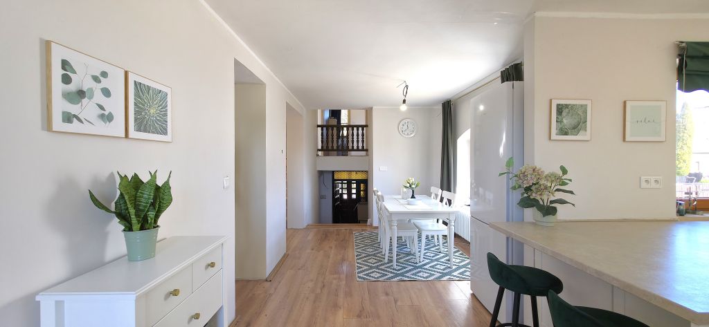 Dom s úžitkovou plochou 255 m² ponúka nadčasovú, viacúrovňovú dispozíciu, ktorá prirodzene oddeľuje dennú a nočnú zónu. Výnimočným prvkom je veľkorysý suterén – dnes už rarita – s kompletným zázemím: garáž s dielňou, technická miestnosť, práčovňa, sklady a plnohodnotná letná kuchyňa.