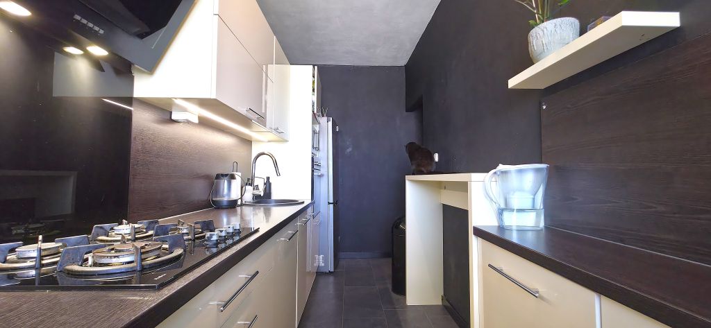 Byt s výmerou 60 m² na 7. poschodí s pivnicou ponúka premyslenú 3 izbovú dispozíciu s nepriechodnými izbami a panoramatickými výhľadmi na Zobor a polia na protiľahlej južnej strane. Nehnuteľnosť prešla rozsiahlou rekonštrukciou realizovanou s dôrazom na detail. Interiér v koncepte dark luxury vytvára jedinečnú atmosféru, ktorá zaujme na prvý pohľad.