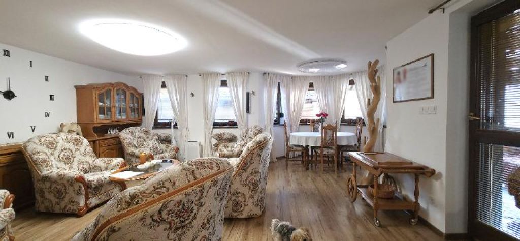 Denná časť: Dominantná obývacia izba s jedálňou a nadštandardným presklením.