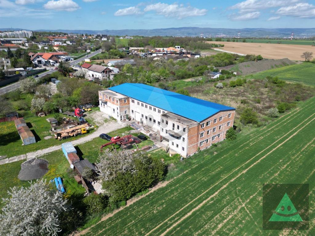 Ponúkame na prenájom podnikateľský objekt v obci Bernolákovo, nachádajúci sa na hlavnom ťahu do Bratislavy. Pozemky sa dajú využiť na parkovanie dopravnej techniky, stavebnej techniky alebo uloženie kontajnerov. Na pozemku je budova ktorá sa dá využívať ako sklad, skladový priestor. Možno prenajať aj po častiach.Pred budovou je cca 5900m2 pozemok, za budovou je cca 5800m2 pozemok. Budova má zastavanú plochu cca 1200 m2.V budove na prízemí sa nachádzajú dve haly so samostatnými bránami. Malá hala má 339,72 m2, tu je strop vysoký 5,62m a brána je široká 3,38m a vysoká 4 m. Veľká hala má 498,68 m2, tu je strop vysoký 5,14 m a brána je široká 3,25m a vysoká 3,88m. Na prízemí sa nachádza aj príprava pre WC, sprchy a kancelárie, ktoré možno po dohode dobudovať.Na poschodí je jeden veľký otvorený priestor s rozlohou 984,26 m 2, tu je strop vysoký 2,7 m. Orientačné pôdorysy sú vo fotkách.Objekt sa nachádza len 7 kilometrov od Bratislavy v obci Bernolákovo, má veľmi dobrý prístup od hlavnej cesty a je vzdialený len 4 km od diaľnice D1 a 5 km od diaľnice D4.