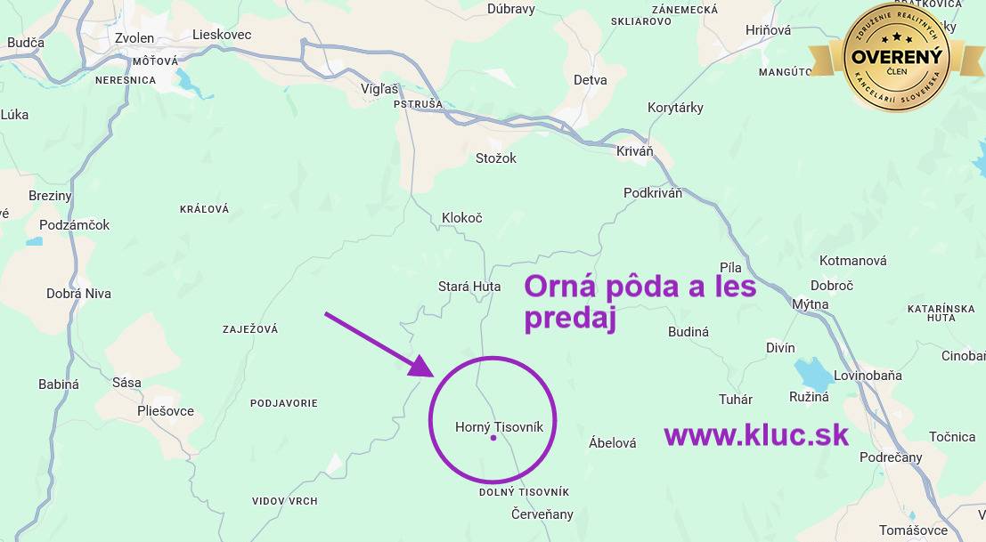 Ponúkame Vám na predaj pozemky v obci Horný Tisovník, okr. Detva.