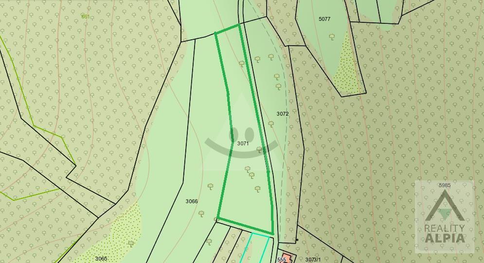 Parcela registra ,,C", číslo parcely: 3071, druh pozemku - Trvalý trávny porast.