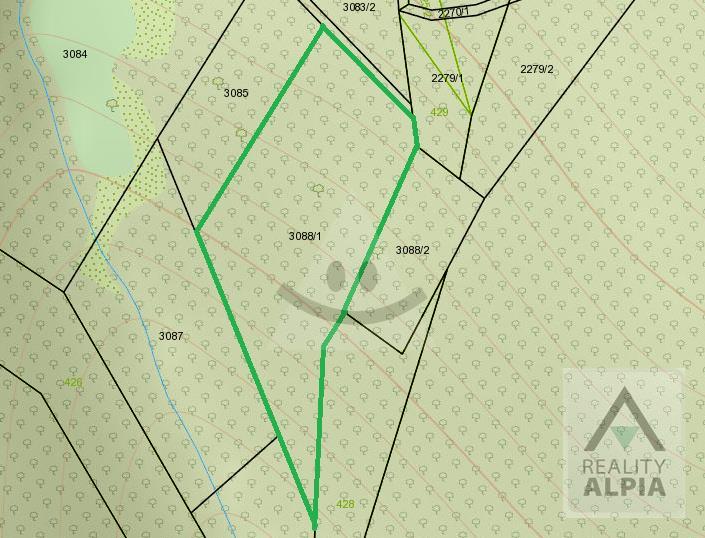 Parcela registra ,,C", číslo parcely: 3088/1, druh pozemku - Trvalý trávny porast.