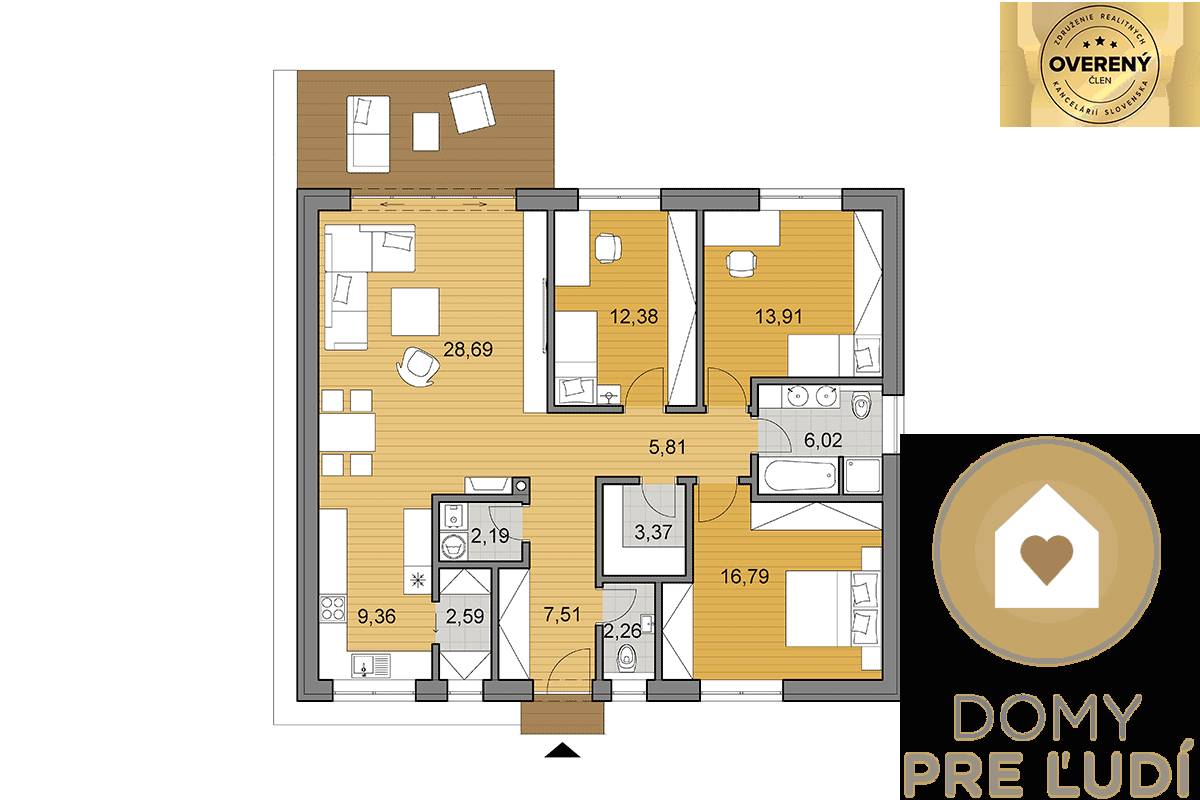 Všetky miestnosti sú navrhnuté s dôrazom na optimálne rozmery a funkčnosť, čo zabezpečuje vysoký komfort bývania.
