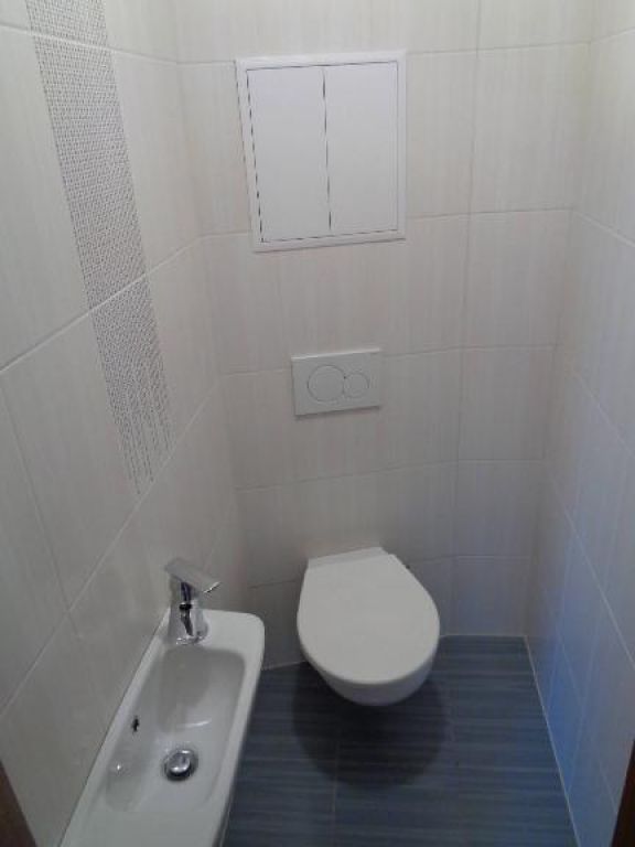 Štandard bytu: Plastové okná a plastové dvere na terasu, vchodové dvere sú bezpečnostné zn. Scherlock, V izbe plávajúca podlaha, v obývacej izbe spolu s kuchyňou ,na chodbe, v kúpeľní a na WC je dlažba. Byt je vystierkovaný. Interierové dvere sú drevené dýhované. V kúpeľní je komletná sanita spolu s vývodmi na pračku. / vaňa, umyvadlo, /. Samostatné WC má zabudovanú nádržku v stene zn. Geberit s umyvadlom. Byt sa predáva bez kuchynskej linky . V kúpeľní a na Wc je zabudovaný ventilátor.