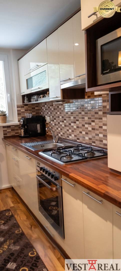 Byt prešiel kompletnou rekonštrukciou v roku 2010, čo znamená, že je pripravený na okamžité nasťahovanie bez potreby ďalších investícií. Byt má plastové okná a nainštalované nové žalúzie, bezpečnostné dvere ADLO. V rámci rekonštrukcie boli zrekonštruované kompletne rozvody vody, odpadu a vykurovania, osadené nové interiérové dvere. Bola zrealizovaná nová elektroinštalácia. Podlahy sú pokryté plávajúcimi podlahami. Kúpeľňa s WC taktiež prešli kompletnou rekonštrukciou.