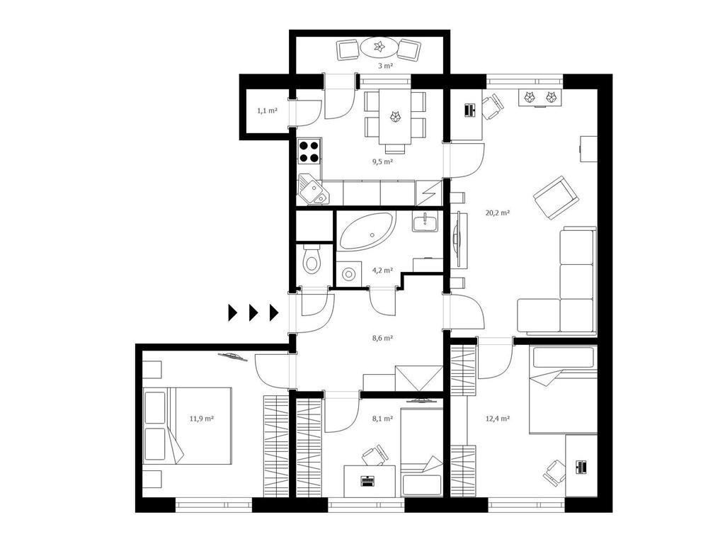 - Druh: 4 izbový byt