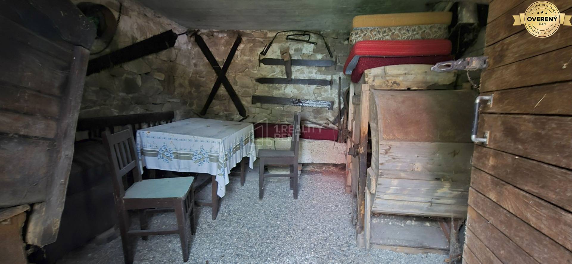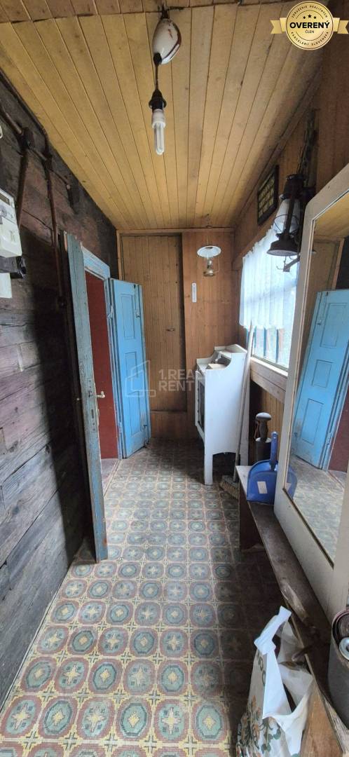 Ponúkame na predaj pôvodnú dreveničku v malebnej obci Kolárovice pri Bytči-časť Škoruby. Drevenica stojí na kamenných základoch, na tomto základe z kameňa je betónová platňa a následne drevená časť. celková zastavaná plocha je 88m2, v kamennej časti sa nachádzajú pivničné priestory. Samotná obytná časť pozostáva zo vstupnej chodby, jednej obývacej miestnosti a kuchyne. Schodiskom sa ide do podkrovia, kde sa nachádza jedna miestnosť, vhodná na vytvorenie nočnej-oddychovej spálne. Kúrenie je zabezpečené novými murovanými akumulačnými pecami, tá v kuchyni slúži aj na varenie a pečenie. Zrekonštruovaná bola strecha, nový krov aj strešná krytina-plech. Drevenica je napojená na elektrickú energiu 220 V. Nie je tu dovedená voda, ani odpad, nemá kúpeľňu. Celková výmera pozemku vrátane zastavaných plôch je 351m2. Prístup autom priamo na pozemok nie je možný, parkuje sa cca 100 m od pozemku.
