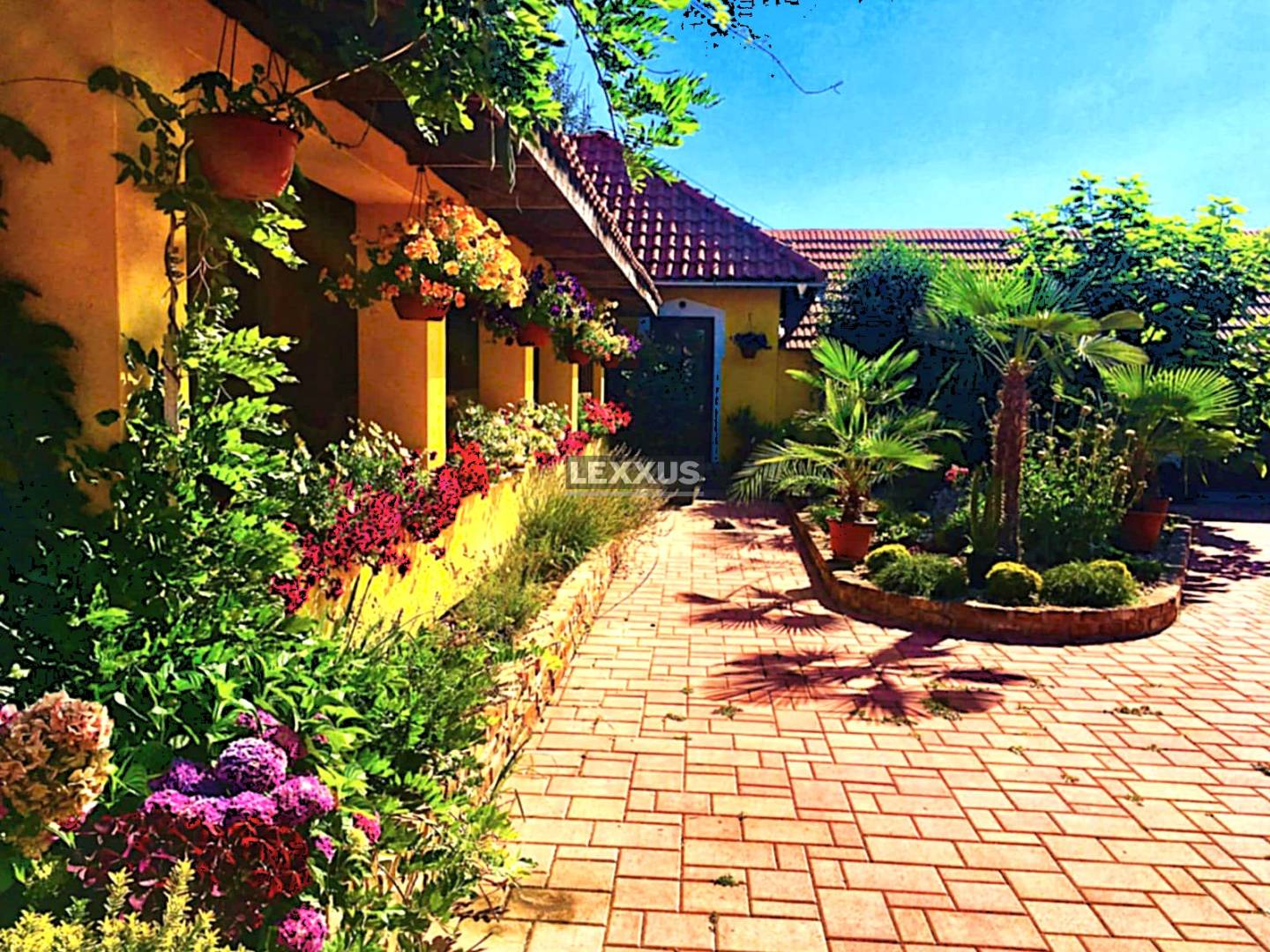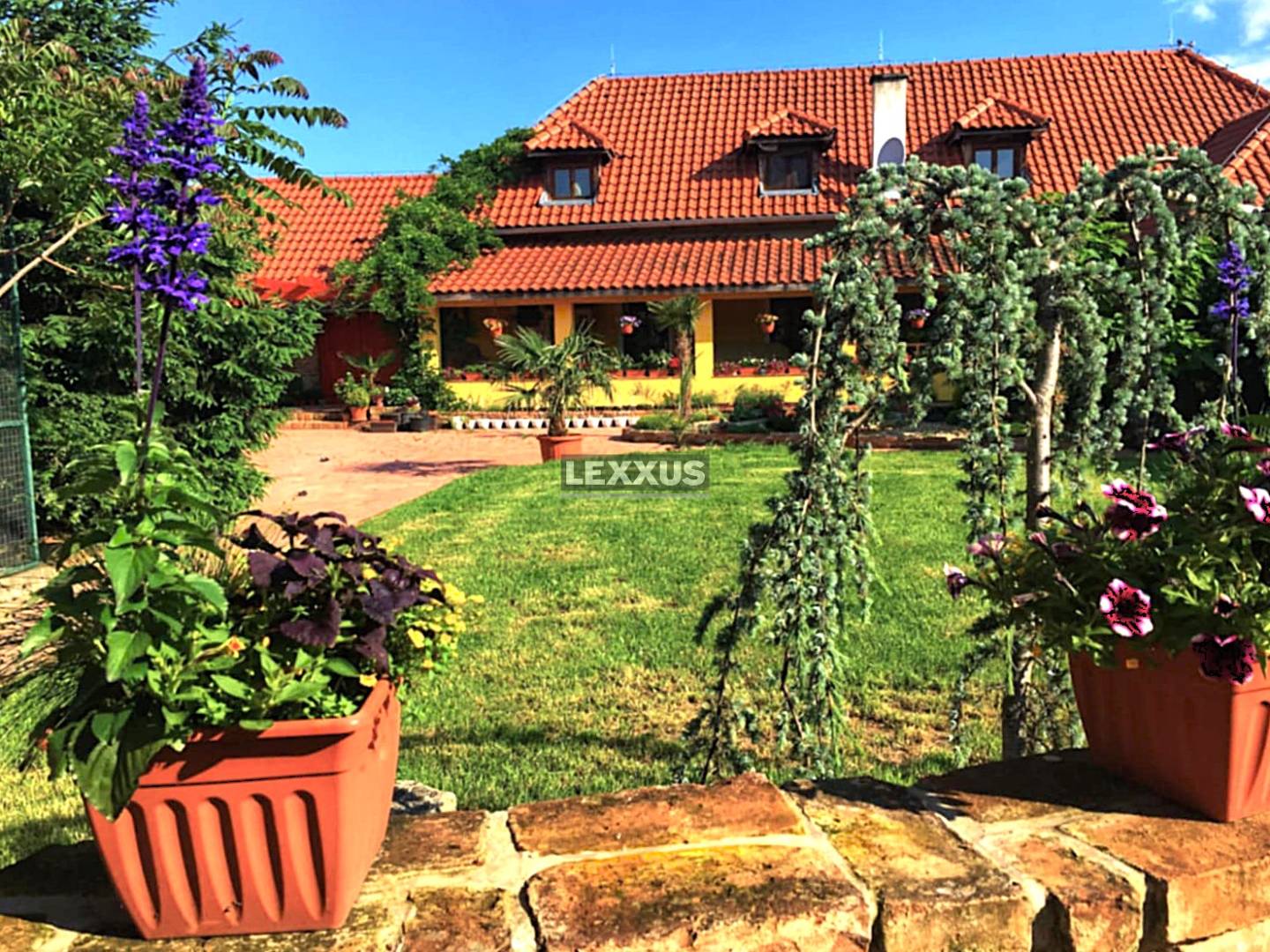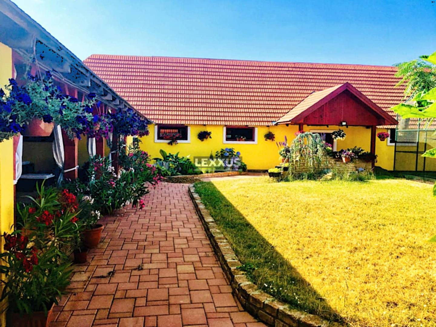 Na pozemku veľkosti 16 000 m2 sa nachádza luxusný rodinný dom o rozlohe 240 m2. Okolo domu je postavený okrasný plot z pálenej tehly vysoký 160 cm príjazdová cesta k domu a všetky chodníky a nádvoria sú vydláždené dlažbou. Nachádza sa tu murovaná garáž na dve autá a dom disponuje aj s dvoma letnými garážami. Na dvore sú dve murované voliéry pre psy a jazierko. V oddychovej zóne dvora je vybudovaná terasa prepojená s domom a príprava na bazén, saunu, dreváreň s kotolňou, letná kuchyňa prepojená s domom, priestranný altánok nádvorie, veľká voliéra pre vtáctvo a studňa.