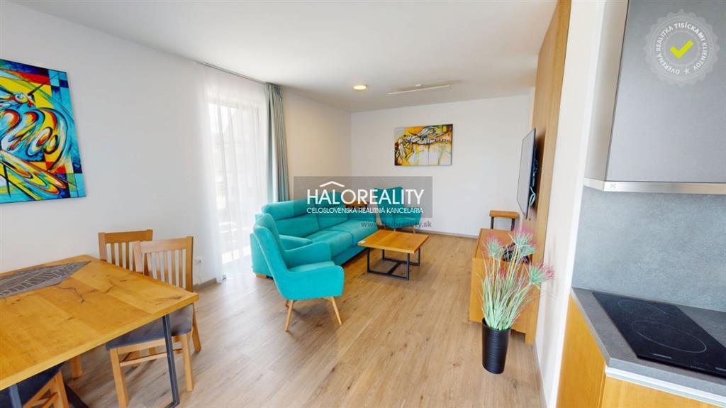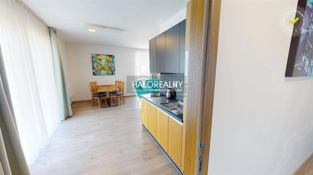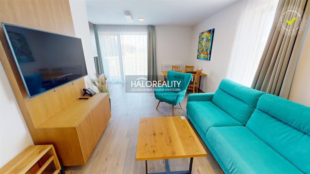 Apartmán je vo vynikajúcom stave, bez známok opotrebenia – aj napriek prenajímaniu hosťom. Predáva sa kompletne zariadený pre 4 osoby s dôrazom na kvalitu a komfort. Nájdete tu vinylovú podlahu, kuchyňu s drezom FRANKE, sklokeramickú varnú dosku, chladničku ELEKTROLUX, kúpeľňu so sprchou GROHE, posteľ a rozkladaciu sedačku s matracom od MATERASSO, a samozrejme Smart TV a internetové pripojenie.