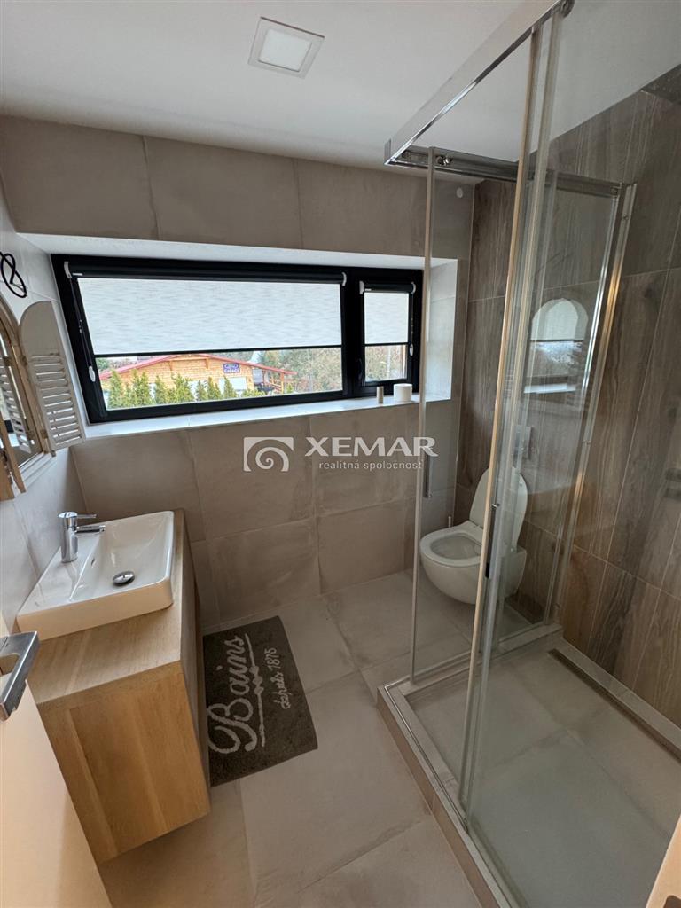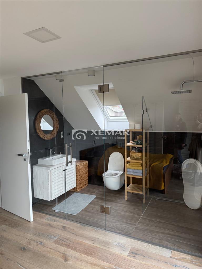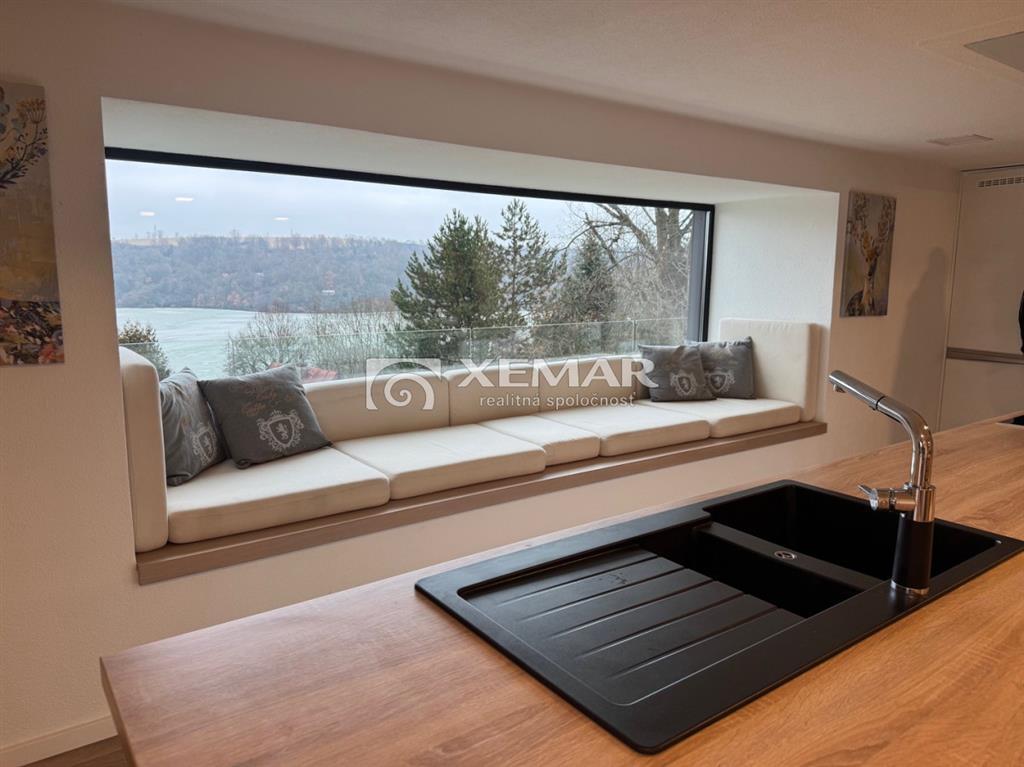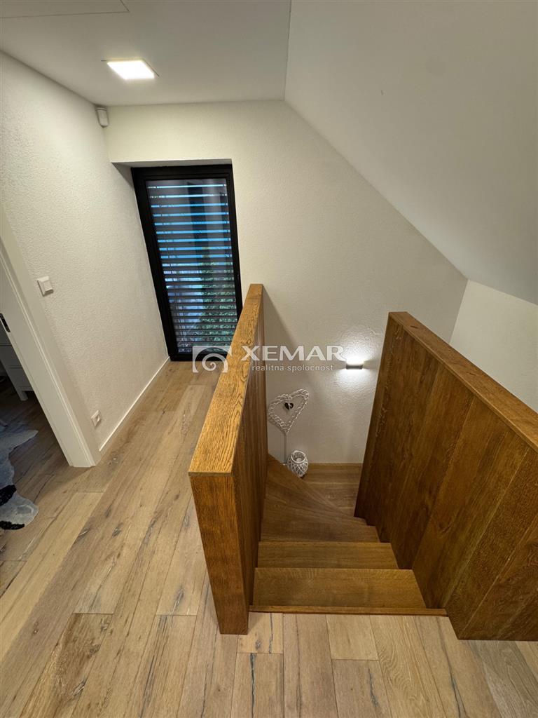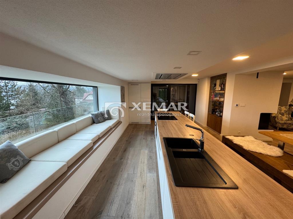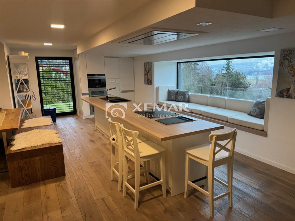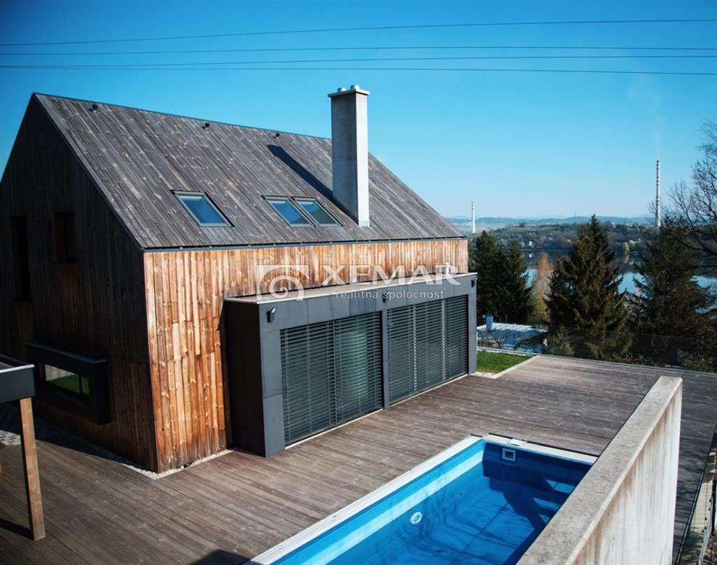 XEMAR (monika.bruchanikova@xemar.sk, alebo 0944 107 803) ponúka na predaj výnimočnú nehnuteľnosť, ktorá spája modernú škandinávsku architektúru, prírodné materiály a panoramatický výhľad na Zvolenskú priehradu. Murovaný dom bol skolaudovaný v roku 2018 a je vhodný na celoročné bývanie, ale aj ako luxusná rekreačná chata. Dominantou domu je nadčasová architektúra s obkladom zo sibírskeho smrekovca, veľkoformátové presklenia a otvorený, svetlom zaplavený interiér. Základné informácie:oplotený pozemok 591 m2elektrická vstupná bránadvojgaráž 40 m2 s bránou na diaľkové ovládanienapojenie na elektriku a vodu, žumpapodlahové vykurovanie (elektrická pec) + pec na peletkyelektrické exteriérové žalúzieklimatizáciakrb pre dokonalú atmosféraDispozícia:prízemie 116 m2 - vstupná chodba, samostatné wc, priestranná obývačka s krbom spojená s plne vybavenou kuchyňou, schodiskoposchodie 98 m2 - chodba, 3 izby, z toho spálňa má vlastnú dizajnovú presklenú kupeľňu a terasu s krásnym výhľadom, samostatná kúpeľňa s wcsuterén 51 m2 - garáž 40 m2, pivnica 11 m2Exteriér: bazén s posuvným prestrešenímaltánok s posedením a grilomupravená záhrada presklená terasa s nádherným výhľadomDom sa predáva kompletne zariadený, tak ako vidíte na foto a je pripravený na okamžité užívanie bez ďalších investícií. Ideálne riešenie pre rodinné bývanie, víkendový relax alebo investíciu na prenájom. Veľmi dobrá poloha v blízkosti Zvolenskej priehrady, Športového areálu Orlík, spojenie prírody, pokoja a dostupnosti do mesta Zvolen. Pre viac informácií a dohodnutie obhliadky ma neváhajte kontaktovať na tel. číslo 0944 107 803.