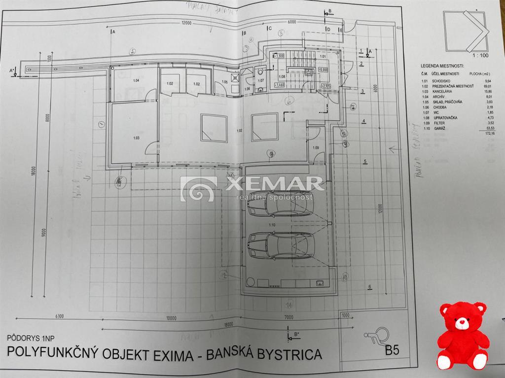 XEMAR (milan.mlcal@xemar.sk alebo 0915 870 350), ponúka na predaj polyfunkčný objekt v absolútnom centre Banskej Bystrice. Nehnuteľnosť je ideálna na kombináciu podnikania a bývania, sídlo firmy, kancelárie, služby či menšiu kliniku. Súčasťou je garáž a príjemná terasa na najvyššom podlaží.Dispozícia1. NP (prízemie): prezenčná miestnosť, kancelária, archív, sklad, práčovňa, chodba, WC, miestnosť upratovačky, garáž2. NP: veľký trojizbový byt s dvomi kúpeľňami a dvomi šatníkmi, špajzu, kuchyňou a WC s úžitkovou plochou 170 m23. NP: schodisko, sklad, terasa, strechaHlavné benefityprestížna adresa v centre mestapolyfunkčné využitie (bývanie + podnikanie)garáž priamo v objekteterasa na 3. NPkompaktná úžitková plocha s logickým členenímZákladné údajeDruh nehnuteľnosti: polyfunkčný objektPočet nadzemných podlaží: 3Výmera pozemku: 760 m2Plocha objektu: 173 m2Parkovanie: garážCena: 1.380.000,- €Zaujalo vás to?Pre viac informácií kontaktujte: 0915 870 350 alebo milan.mlcal@xemar.sk.