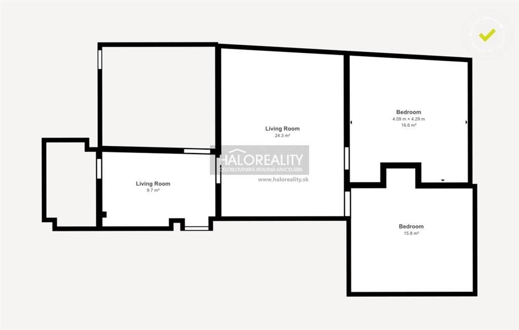 Z obývacej miestnosti sú dve samostatné obytné miestnosti.