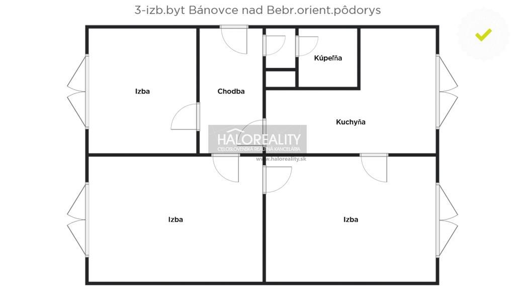 PREDAJ, TROJIZBOVÝ BYT BÁNOVCE NAD BEBRAVOU, SEVER - ZNÍŽENÁ CENA