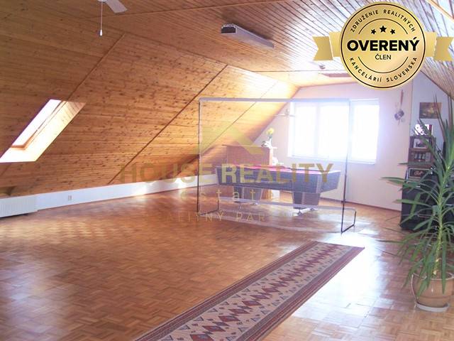 Obytné podkrovie kopíruje spodnú časť domu - momentálne je to jeden veľký otvorený celok, s možnosťou rozdelenia na menšie miestnosti.