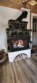 Dominantou hlavnej izby sú elegantné tmavozelené krbové kachle, ktoré vytvárajú srdce domu. Pri nich vzniká priestor na spoločné večere, rozhovory aj pokojné zimné večery po dni strávenom v horách. Kuchynský kút je vybavený kvalitnými, nepoužitými spotrebičmi, ktoré citlivo dopĺňajú charakter interiéru.