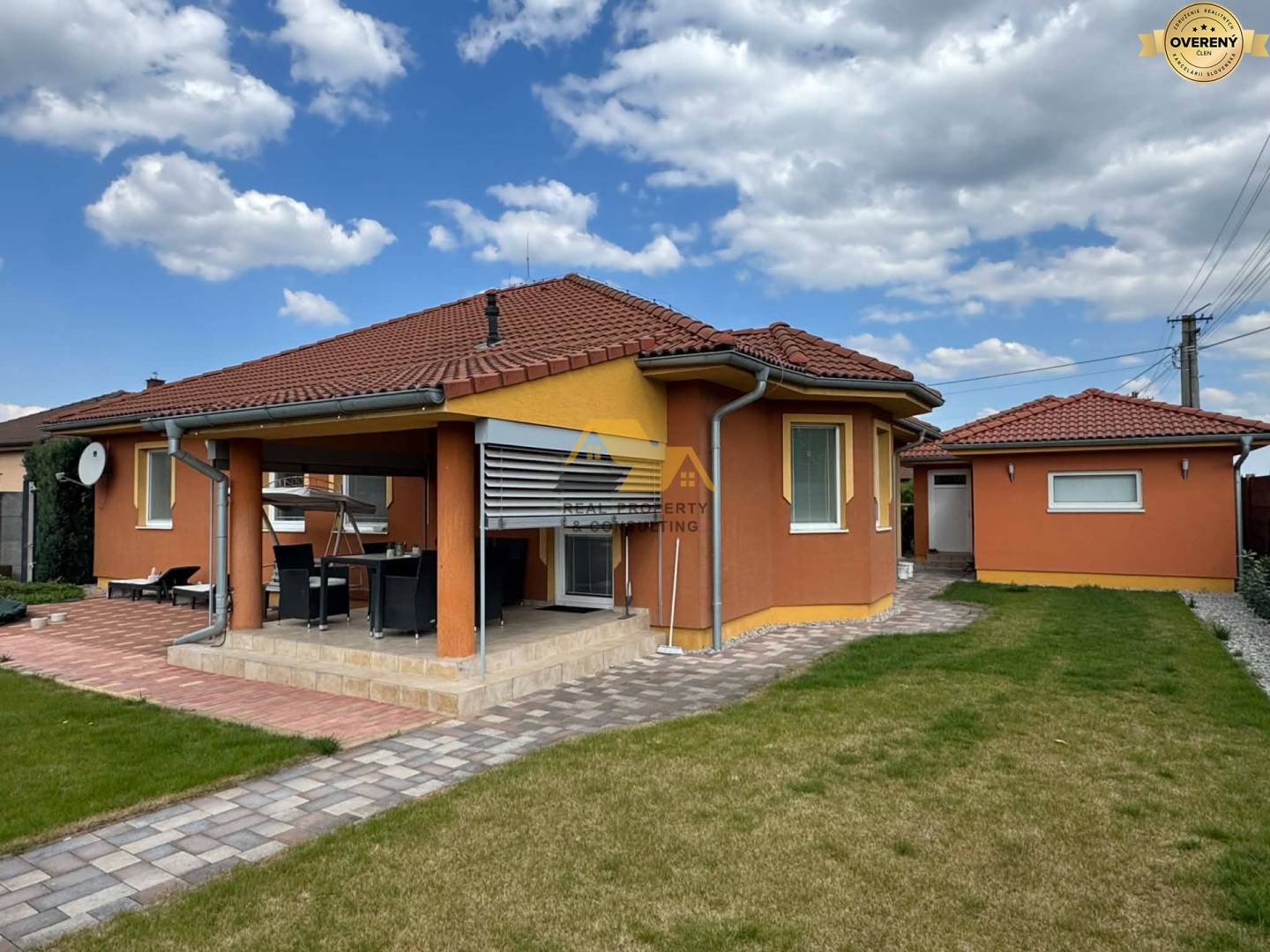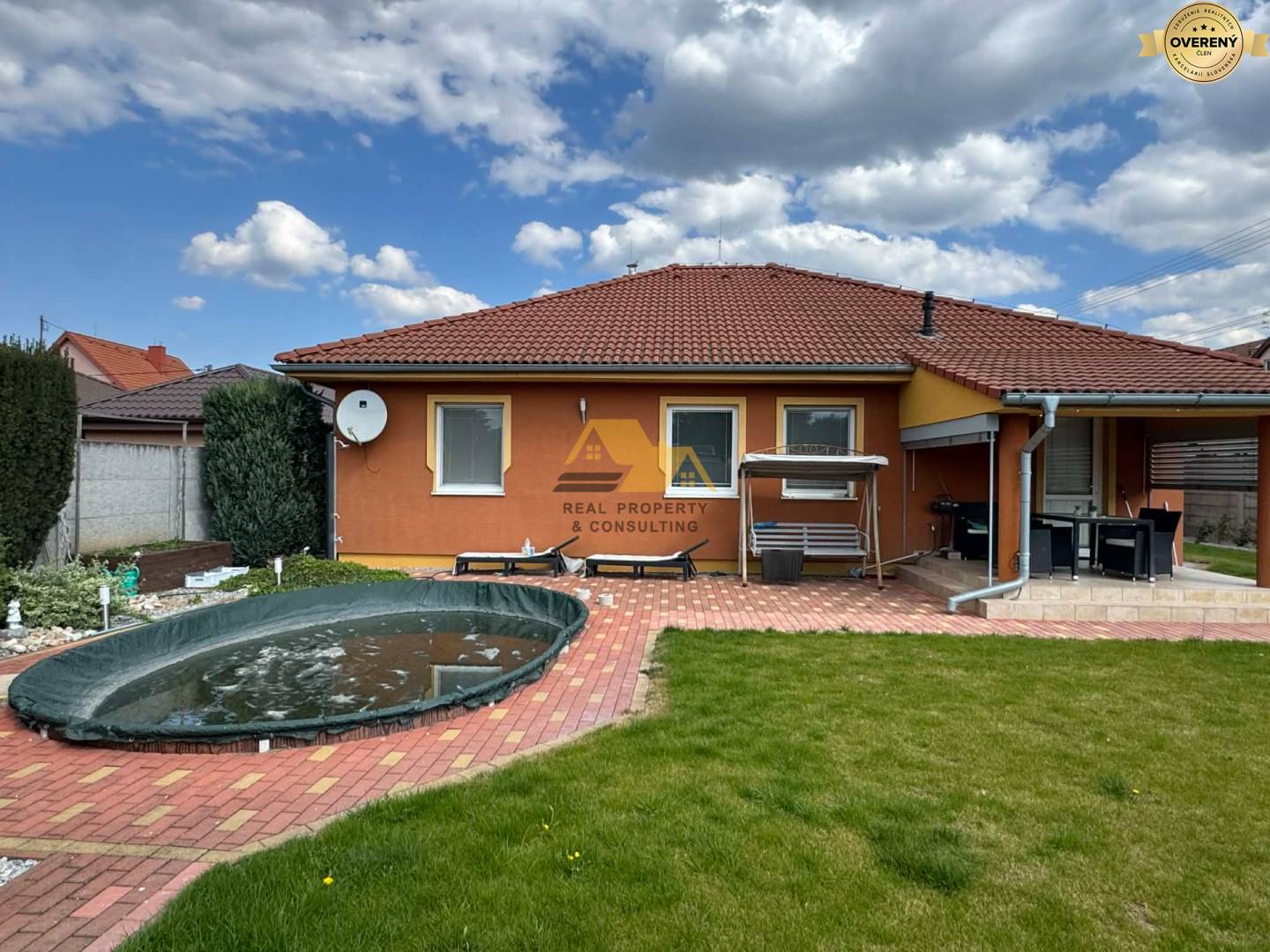 Realitná kancelária Real Property & Consulting s.r.o. ponúka na predaj pekný rodinný dom s dvojgarážou v obci Bánov. Tehlový bungalov bol kolaudovaný v roku 2009. Má plastové okná, laminátové podlahy a dlažbu, škridlovú strechu, je zateplený. Dom je napojený na obecnú vodu, elektrinu, plyn, optiku, kanalizáciu. Vykurovanie je podlahové a radiátorové zabezpečené plynovým kotlom. Na upravenom pozemku sa nachádza dvojgaráž s otváraním na diaľkové ovládanie, altánok, bazén, okrasné kríky, vŕtaná studňa.