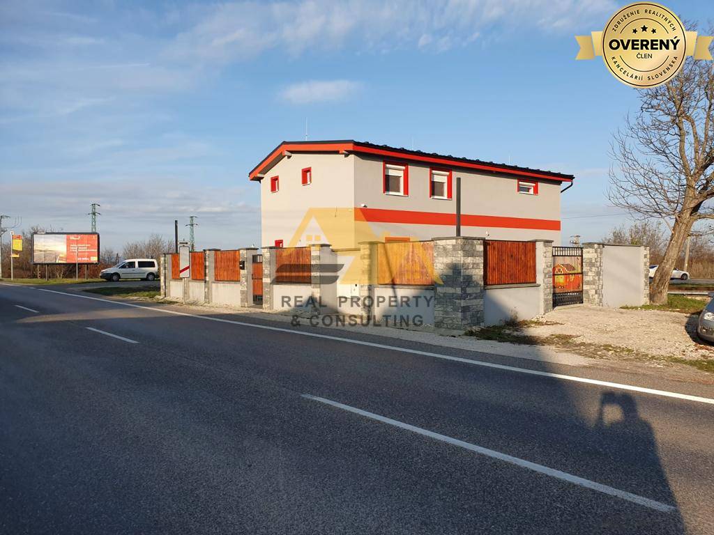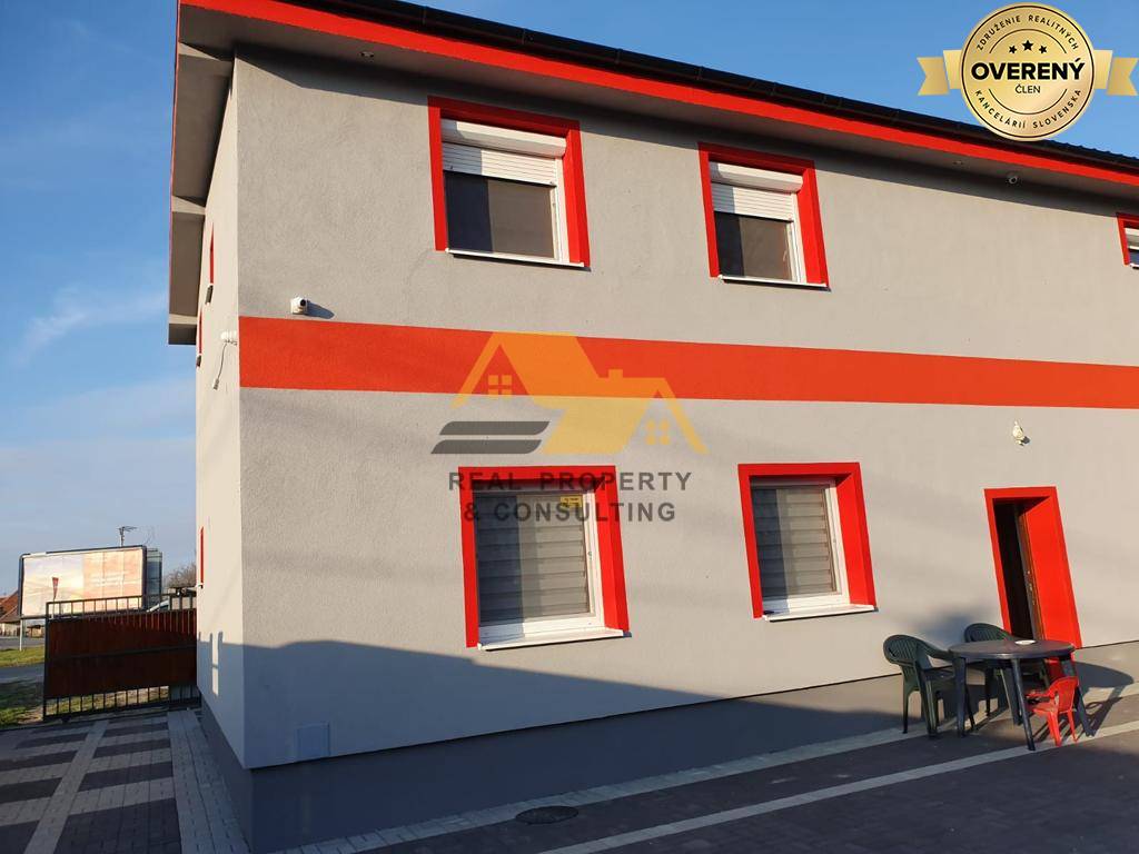 Realitná kancelária Real Property & Consulting s.r.o. ponúka na predaj priestranný podnikateľský objekt v obci Komjatice. Budova prešla kompletnou rekonštrukciou a vybudovaním nadstavby v roku 2016. Má plastové okná s vonkajšími roletami, laminátové podlahy v obytných izbách, dlažbu na chodbe, v kuchyniach a kúpeľniach. Kúrenie je zabezpečené plynovým kotlom cez radiátory. Budova je napojená na inžinierske siete - obecnú vodu, elektrinu, plyn, optiku. Odpadová voda je riešená prostredníctvom žumpy. Na pozemku sa nachádza studňa, priestor na parkovanie, je kompletne oplotený. Objekt je možné využiť ako kancelárske priestory, ubytovňu, je vhodný aj na bývanie (2 bytové jednotky).