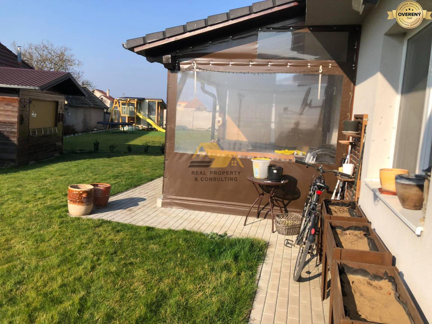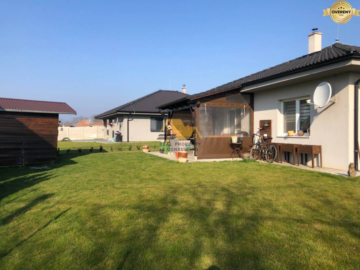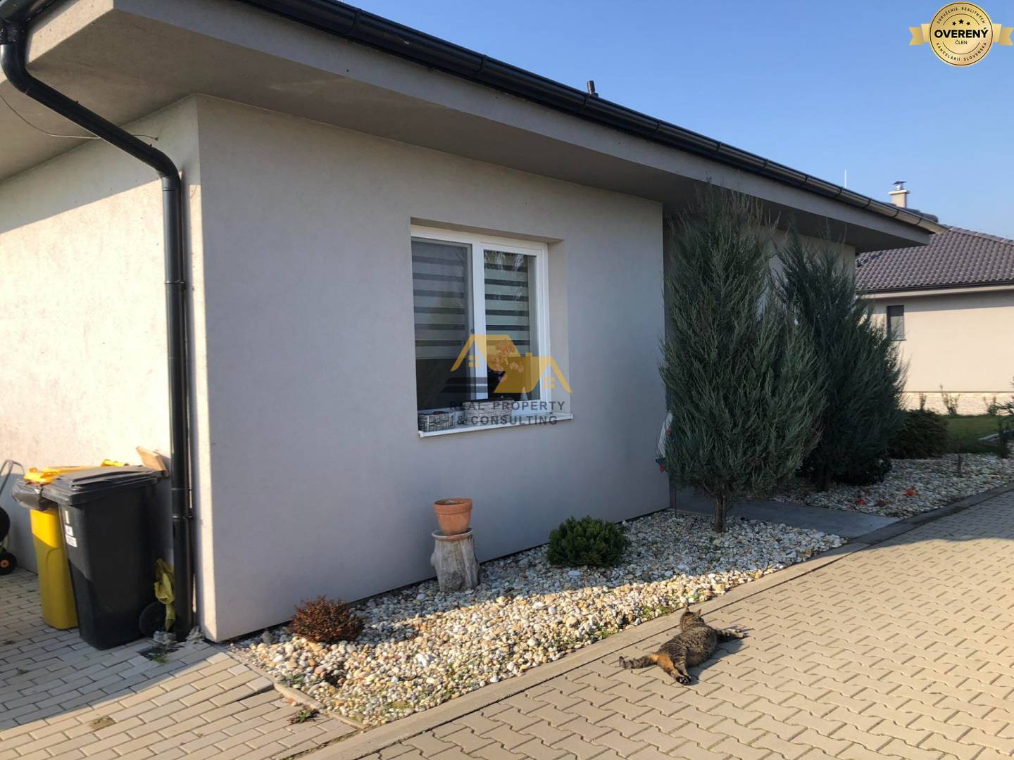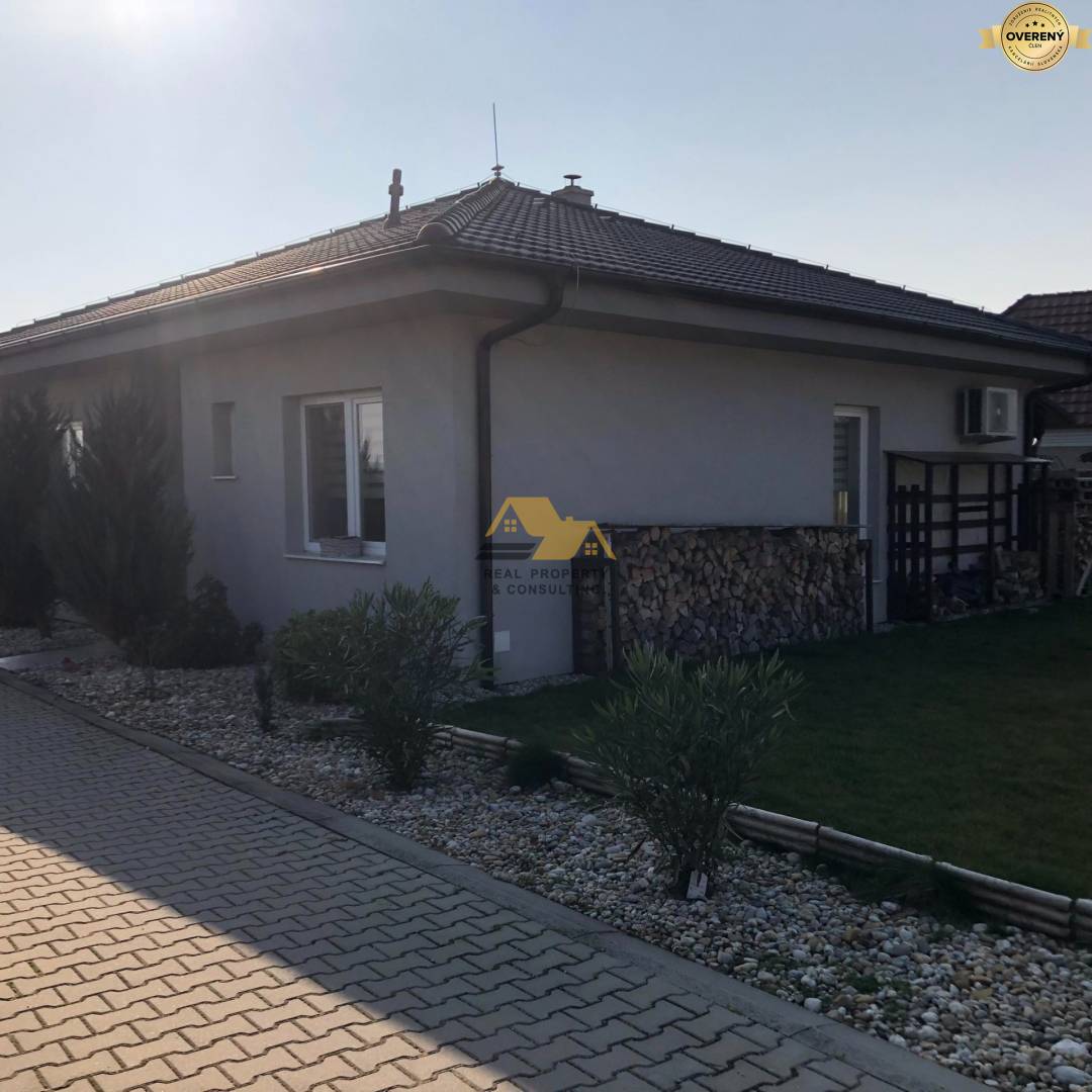 Realitná kancelária Real Property & Consulting s.r.o. ponúka na predaj pekný 3 izbový rodinný dom v tichej, uzavretej ulici v obci Dvory nad Žitavou. Bungalov bol skolaudovaný v roku 2018, je zateplený 10cm polystyrénom, má plastové okná, laminátové podlahy, dlažbu v kúpeľni, na chodbe, na toalete. Dom je klimatizovaný, napojený na inžinierske siete - obecná voda, elektrina, kanalizácia, optika, plyn. Vykurovanie je podlahové, možnosť vykurovania aj krbovými kachlami na tuhé palivo. Na pozemku sa nachádza vŕtaná studňa, záhradný domček (3,5x3,5m), upravená záhrada, je oplotený s elektrickou bránou.