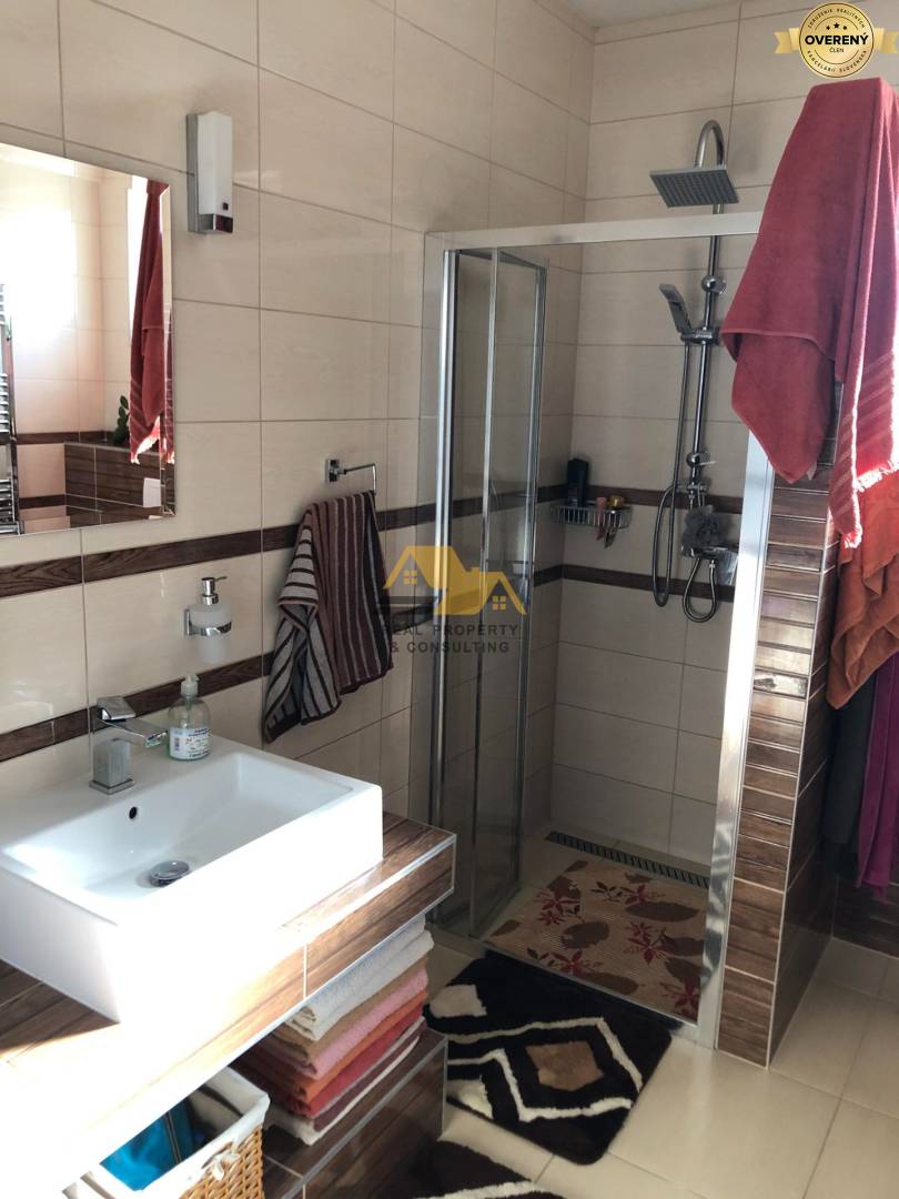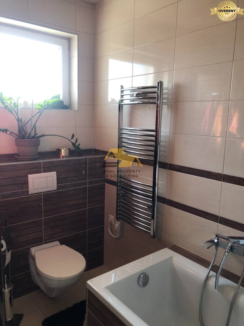 DISPOZÍCIA A VYBAVENIE: Dom je slnečný a dobre dispozične riešený. Pozostáva zo vstupnej chodby, priestrannej obývačky s výstupom na terasu spojenej s kuchyňou s kuchynskou linkou na mieru so vstavanými spotrebičmi, spálne a detskej izby. V kúpeľni sa nachádza vaňa, umývadlo, sprchový kút, toaleta. K domu prislúcha špajza, oddelená toaleta, zastrešená terasa a úložný priestor na povale (5x5m). ODPORÚČAM OBHLIADKU!