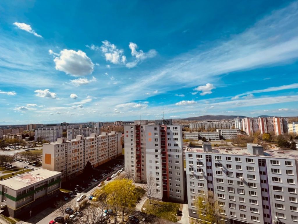 .: Byt je umiestnený na 13. nadzemnom podlaži panelového obytného domu s pekným výhľadom smerom na Rakúsko. Byt je čiastočne zrekonštruovaný (viď fotogaléria). Vnútorné vybavenie bytu tvoria rozvody studenej a teplej vody, kanalizácie, elektrickej energie. Nová kuchynská linka, vstavaná rúra a keramická dvojplatnička. Vykurovanie je ústredné. V kúpeľni je keramická dlažba a vaňa. Byt má plastové okná, plastové vonkajšie rolety aj zasklená loggia s výhľadom smerom na Rakúsko. Orientácia bytu je na juhozápad.