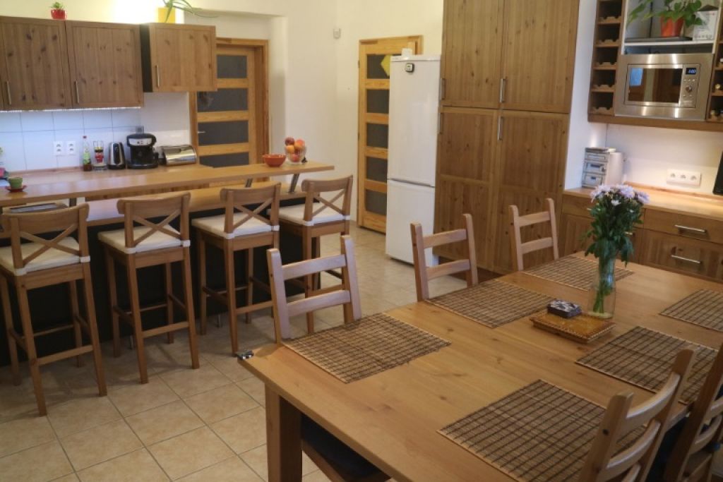 - v obývačke sa nachádza krb s výmenníkom, ktorý môže tiež slúžiť ako zdroj tepla