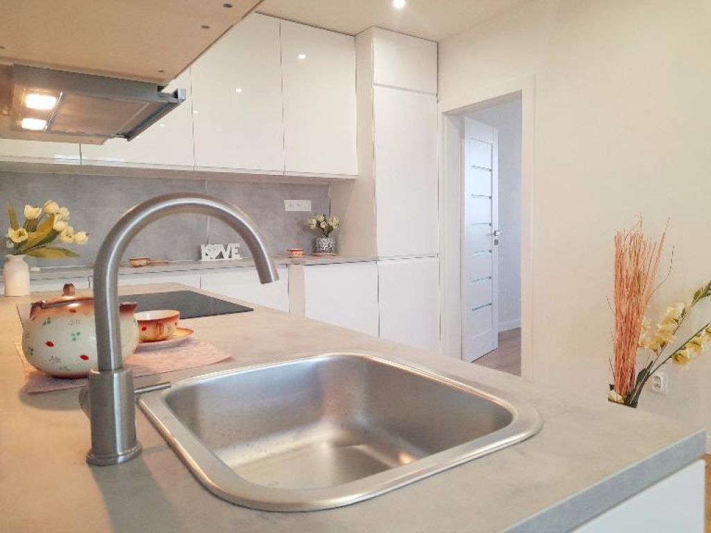 Byt je po práve dokončenej kompletnej novej modernej a nepoužívanej rekonštrukcii. Rekonštrukcia zahŕňa: vchodové bezpečnostné dvere, v celom byte sú nové kvalitné biele interiérové drevené dvere s deliacimi matnými bielymi mriežkami s tenkým sklíčkom /lacobel/ + drevené zárubne a moderné hranaté kľučky, plastové okná s výklopnými vetračkami /malé okno v každej miestnosti/ s novými bielymi žalúziami, nové kvalitné plávajúce laminátové podlahy tvrdosti 8mm, širšie biele obvodové lišty + nové prechodové lišty. Nové stierky a maľovky v celom byte, nové rozvody vody i odpadu. Kompletne nová elektroinštalácia v celom byte: nová rozvodná poistková skrinka, nová skrinka na wifi router-optiku; nové vypínače a zásuvky; nové vývody pre osadenie svietidiel. Bodové osvetlenie. Revízna správa je samozrejmosťou. Kúpeľňa: nová vaňa + nová batéria, kúpeľňová skrinka s umývadlom a batériou, nové veľkoformátové moderné obklady i veľkoformátová dlažba, prívod i vývod na práčku i sušičku, bodové osvetlenie. Nové samostatné WC zn. Geberit s dvojitým splachovaním.