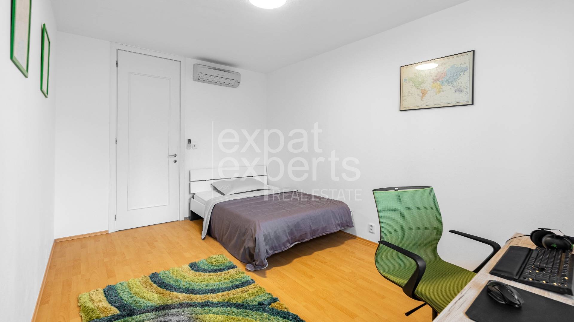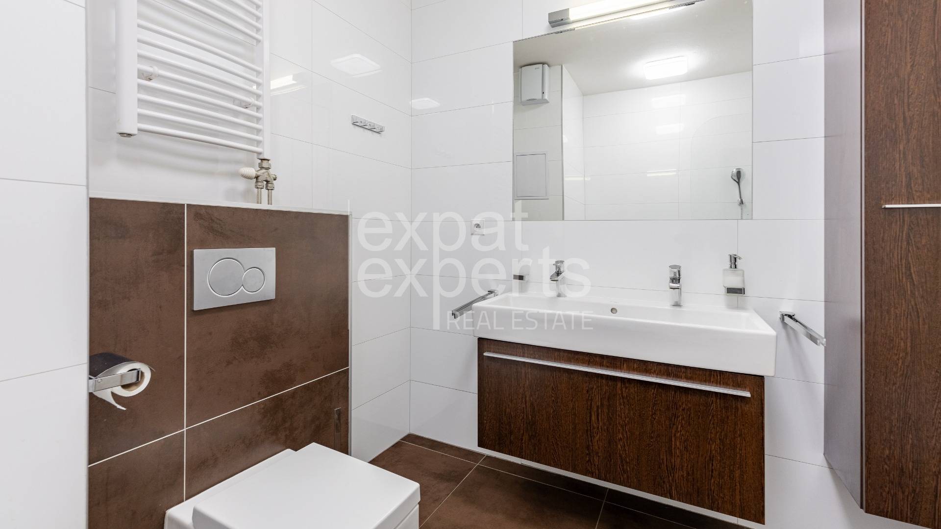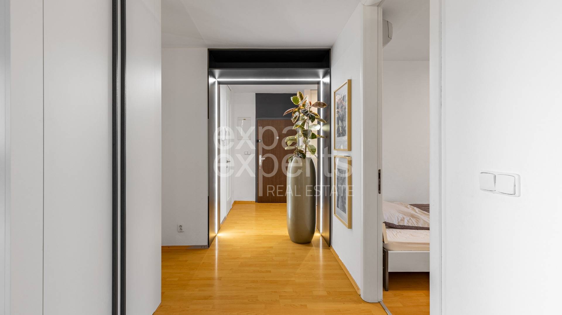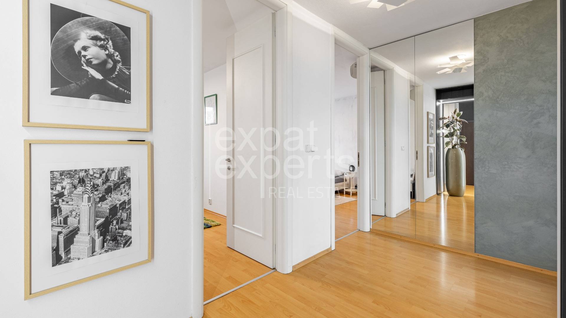 Vo všetkých izbách je osadená klimatizácia, v celom byte je dostatok úložných priestorov (vstavané skrine s policami/na vešanie).