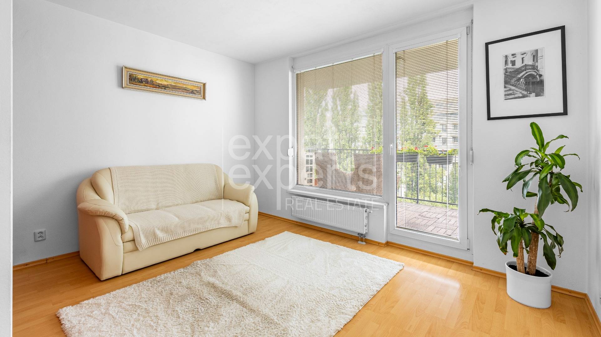 Byt sa predáva zariadený nábytkom a spotrebičmi ako zobrazujú fotografie okrem TV, obrazov, pracovného stola, črepníkov (loggie).