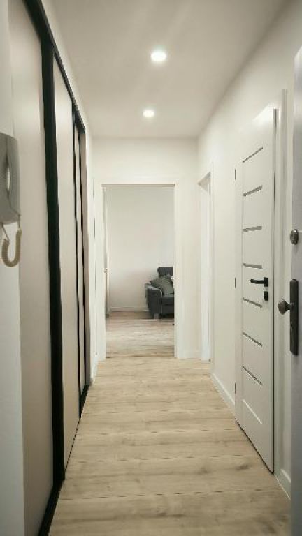 V rámci REKONŠTRUKCIE boli vymenené: nové biele vstupné vchodové bezpečnostné dvere s 15bodovým uzamykaním, nové biele drevené interiérové drevené dvere s tenučkými pásikmi s zasklením+ drevené zárubne a moderné čierne hranaté kľučky, nové atypické kvalitné plávajúce laminátové podlahy tvrdosti 8mm. Kúpeľňa: nová vaňa + nová batéria, nová kúpeľňová skrinka s umývadlom a batériou so zrkadlom i osvetlením, nové veľkoformátové moderné obklady i veľkoformátová dlažba, bodové osvetlenie. Nové samostatné moderné WC. Plastové okná a nové žalúzie.