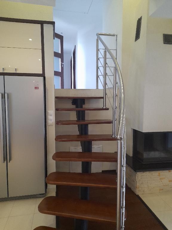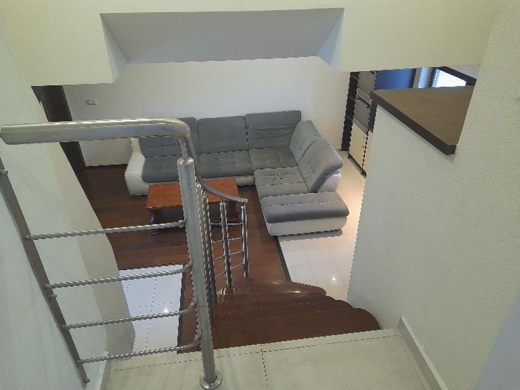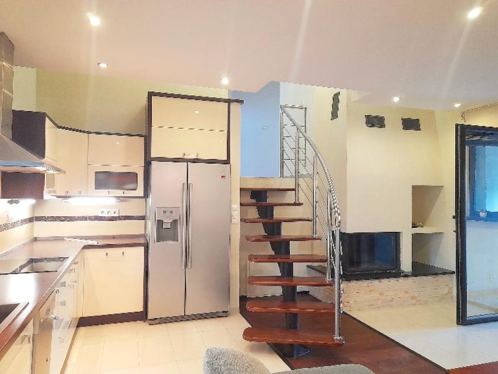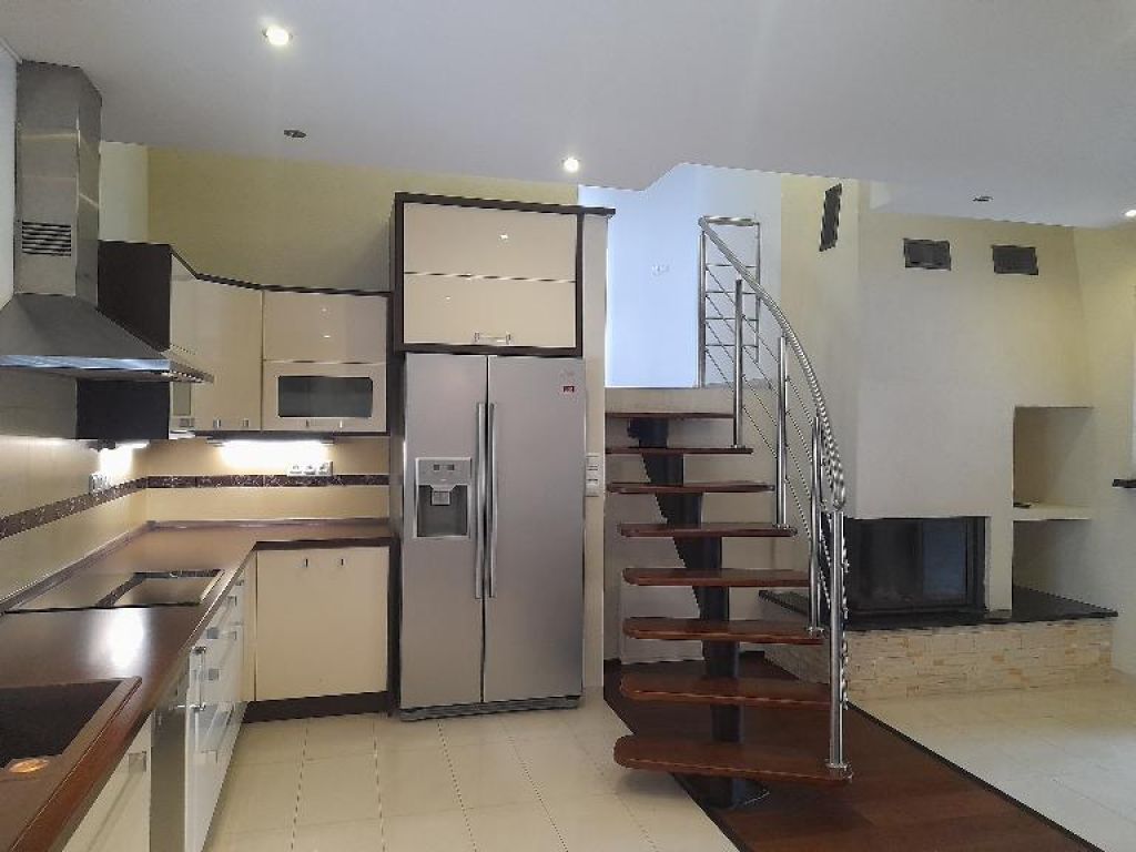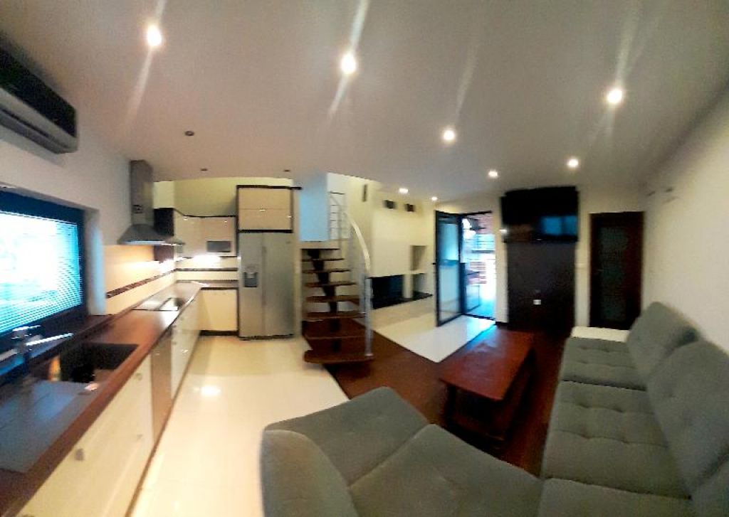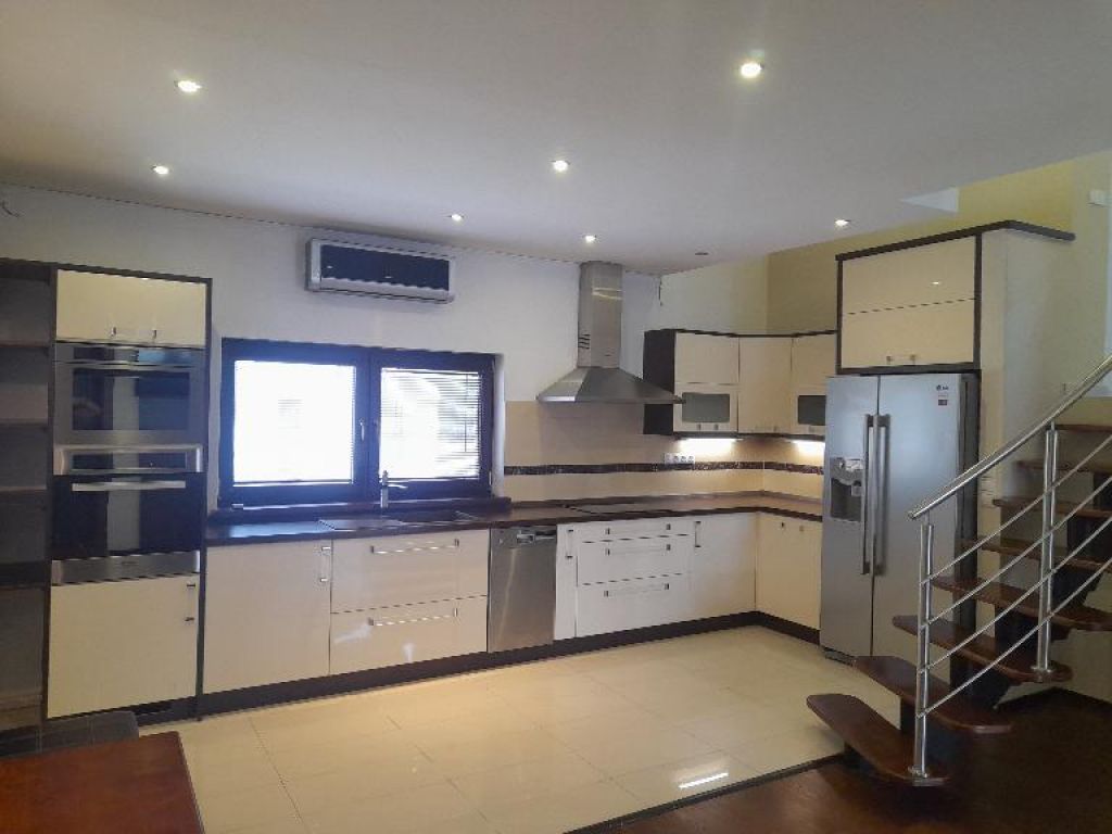 Kuchyňa: moderná kuch. linka do tvaru "L" so všetkými vstavanými spotrebičmi /chladnička s mrazničkou, umývačka riadu, varná doska, teplovzdušná rúra, digestor/, základné vybavenie kuchynskej linky, stôl, stoličky.