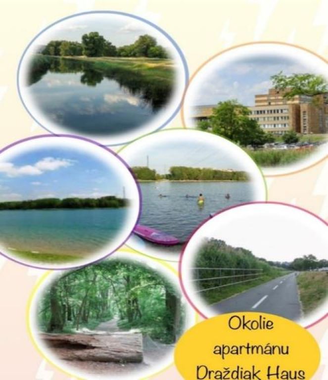 - Na brehu jazera Draždiak reštaurácie a bufety, samoobslužná sauna, tenisové kurty....