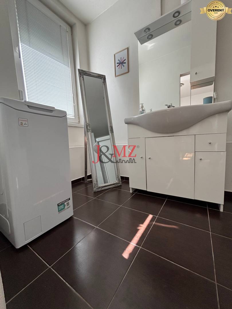 Kúpeľňa ponúka komfortné riešenie so sprchovým kútom aj vaňou, toaleta je samostatná. Byt sa prenajíma kompletne zariadený a vybavený vrátane všetkých potrebných spotrebičov, takže nový nájomca sa môže nasťahovať bez ďalších väčších investícií.