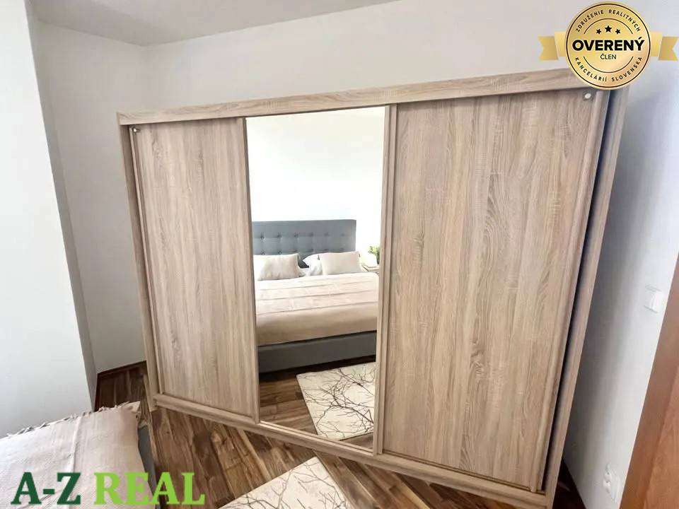 Spálňa: manželská posteľ 180x200. Trojdielna šatníková skriňa so zrkadlom.