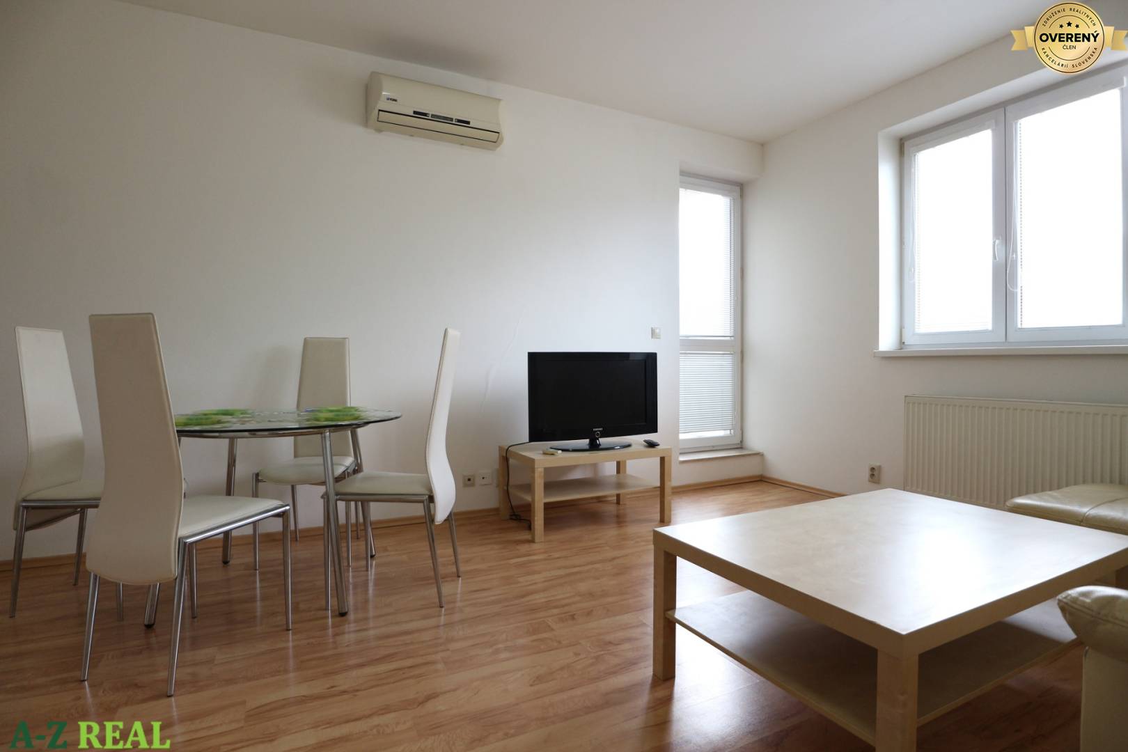plastové okná, plávajúca podlaha v kombinácii s dlažbou, moderná kuchynská linka so zabudovanými spotrebičmi (chladnička s mrazničkou, sklokeramická platňa s elektrickou rúrou, digestor, umývačka), byt je vybavený klimatizáciou aj vlastným plynovým kotlom),