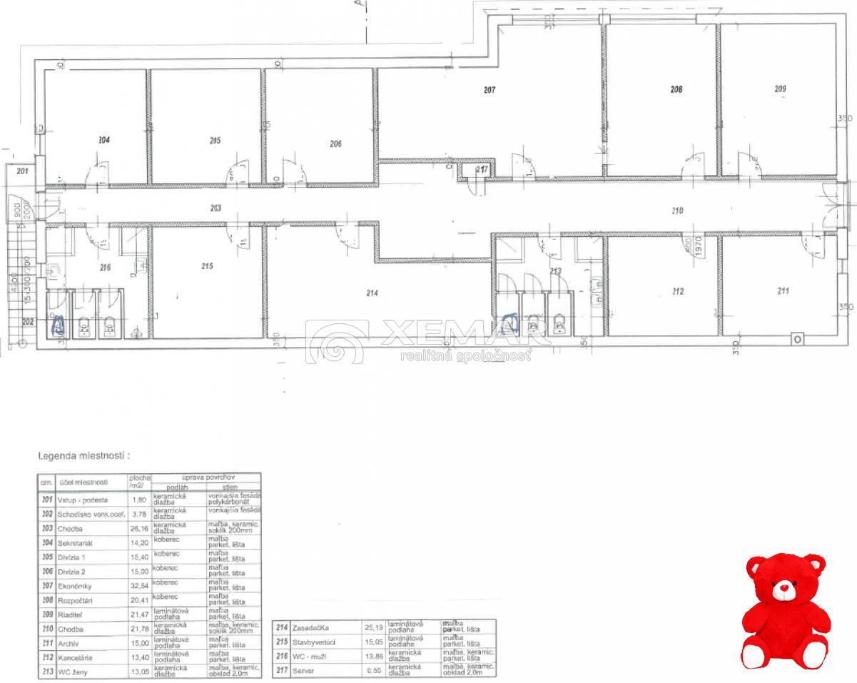 XEMAR (monika.bruchanikova@xemar.sk, alebo 0944 107 803) ponúka na prenájom Administratívno-skladový areál v Banskej Bystrici, časť Senica. Areál sa nachádza v dobrej dopravnej dostupnosti, v blízkosti hlavnej komunikácie Banská Bystrica – Brezno, čo z neho robí ideálne miesto pre administratívne, servisné, logistické či skladové využitie.Pozemok o rozlohe 4 380 m2 je rovinatý a kompletne napojený na všetky inžinierske siete (elektrina, voda, kanalizácia).Spevnené plochy poskytujú dostatočný priestor na parkovanie aj manipuláciu s nákladnými vozidlami.Popis objektov v rámci areálu1. Administratívna budova (hlavný objekt)1. NP – 292 m2: skladové priestory, dielne, garáže a kotolňa2. NP – 213 m2: 9 kancelárskych miestností, zasadacia miestnosť, ženské a mužské sociálne zariadenia (toalety a sprchy)Budova je murovaná so sedlovou strechou, vo veľmi dobrom technickom stave.Zdroj tepla zabezpečuje kotol na pevné palivo alebo alternatívne peletková pec, čo prináša flexibilitu a úsporu prevádzkových nákladov.2. Administratívna budova č. 2Zastavaná plocha: 57 m2Obsahuje 2 kancelárie a sociálne zázemie (sprchy a WC). Objekt je vhodný ako doplnkové, administratívne alebo prevádzkové zázemie.3. – 5. Železné prístreškyCelková plocha: 493 m2Prístrešok č. 1 – 135 m2Prístrešok č. 2 – 100 m2Prístrešok č. 3 – 258 m2Všetky prístrešky sú rozmerovo prispôsobené pre nákladné vozidlá, vhodné na parkovanie, skladovanie alebo montážne práce.6. Plechová garážPlocha: 45 m2, vhodná na parkovanie alebo sklad náradia a techniky.Základná charakteristika a výhody areálu- strategická poloha v rámci Banskej Bystrice, s rýchlym napojením na hlavný cestný ťah- kompletné inžinierske siete a dostatok parkovacích a manipulačných plôch- viacúčelové využitie: administratíva, servis, sklad, výroba- murované objekty vo veľmi dobrom technickom stave- možnosť okamžitého využívania bez nutnosti väčších investíciíAreál ponúka variabilitu využitia – od sídla spoločnosti s administratívnym a skladovým zázemím až po servisný či menší výrobný objekt.V prípade záujmu o ďalšie informácie, technickú dokumentáciu alebo obhliadku areálu ma prosím kontaktujte na tel. číslo 0944 107 803.CENA nájmu je 5.500€/mesiac bez DPH.Pri podpise zmluvy sa platí mesačný nájom, vratný depozit vo výške 2 mesačných nájmov a nevratný depozit vo výške jedného mesačného nájmu.