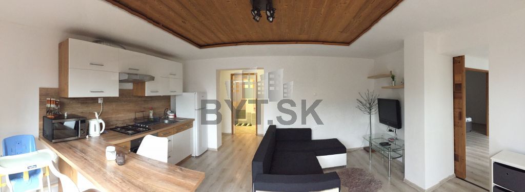 Byt je po kompletnej rekonštrukcii čiastočne zariadený v celkovej výmere 59m2. Byt má samostatný vstup pozostáva z dvoch obytných miestností, kuchyňa spojená s obývacou , kúpeľňa , WC a predsieň-šatník.