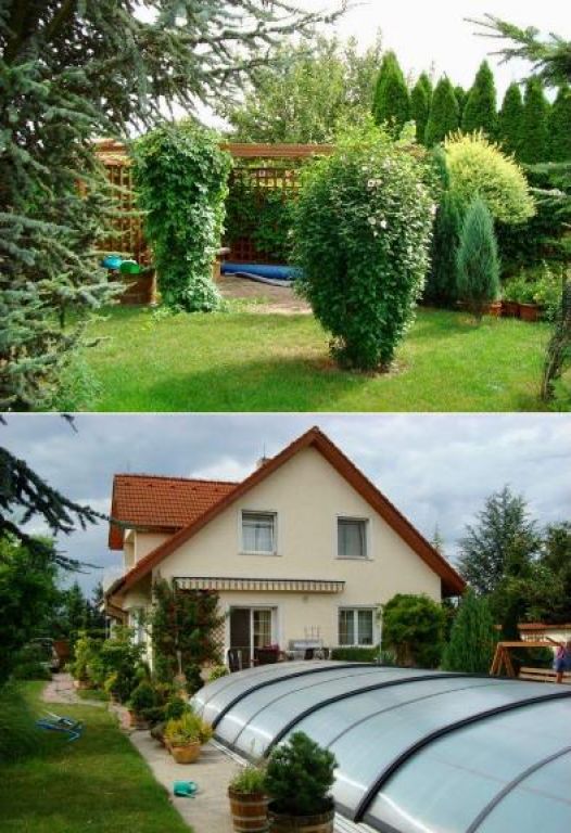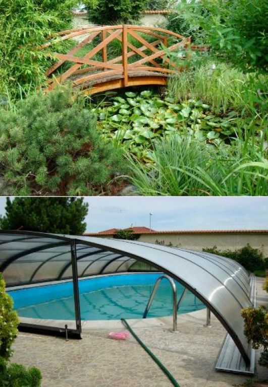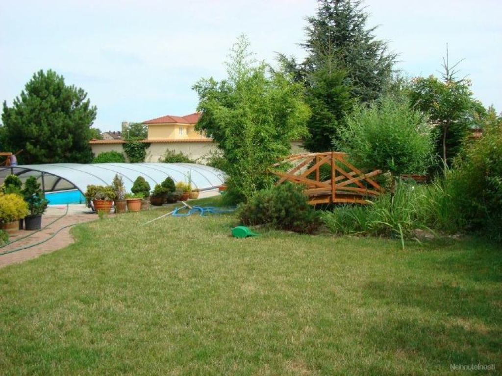 Veľký profesionálne udržiavaný pozemok – záhrada má 1100 m2 a je na nej umiestnený krytý bazén 50 m2, japonské jazierko aj altán