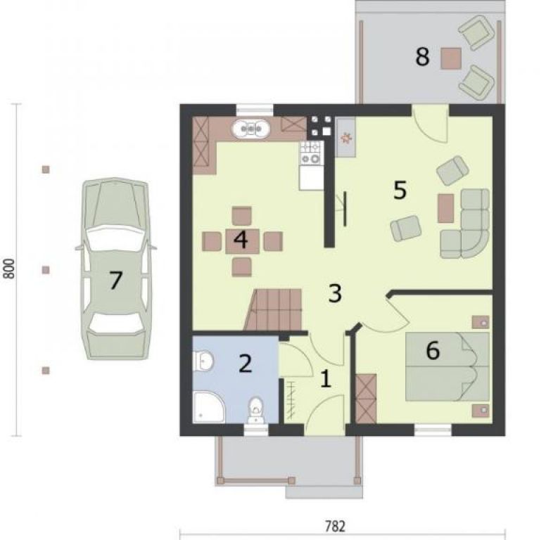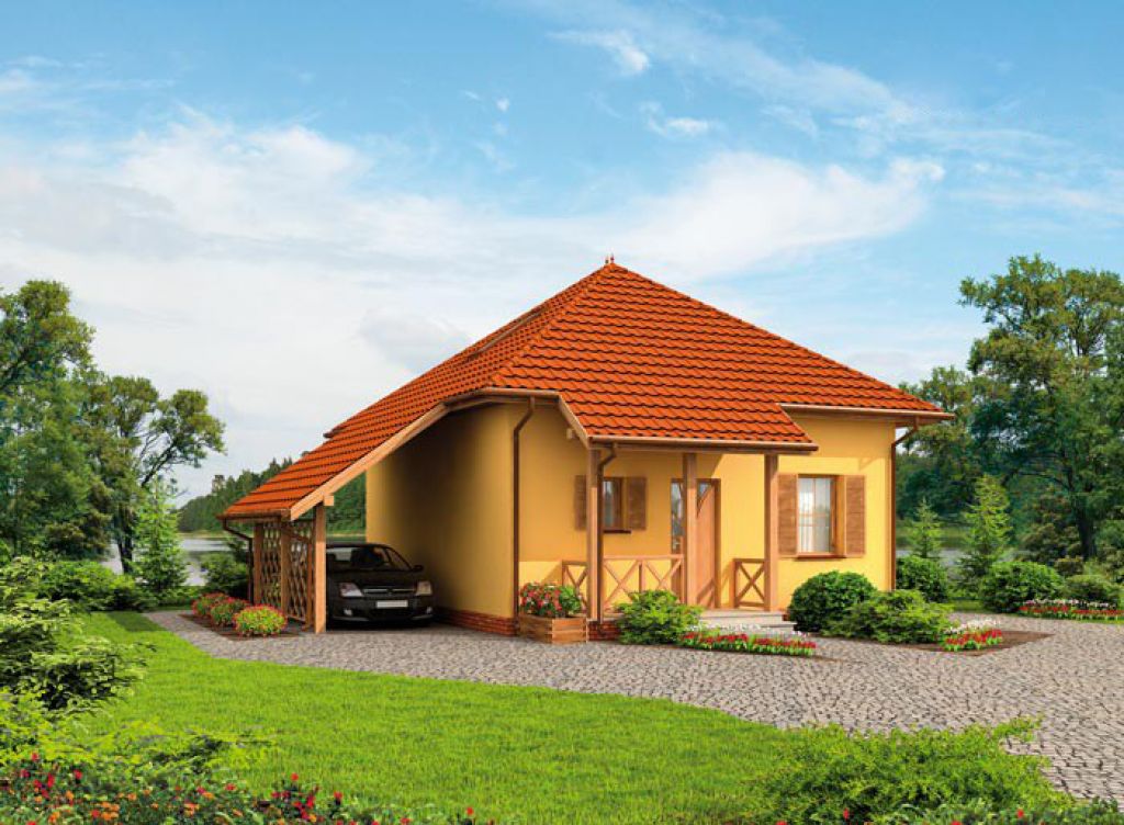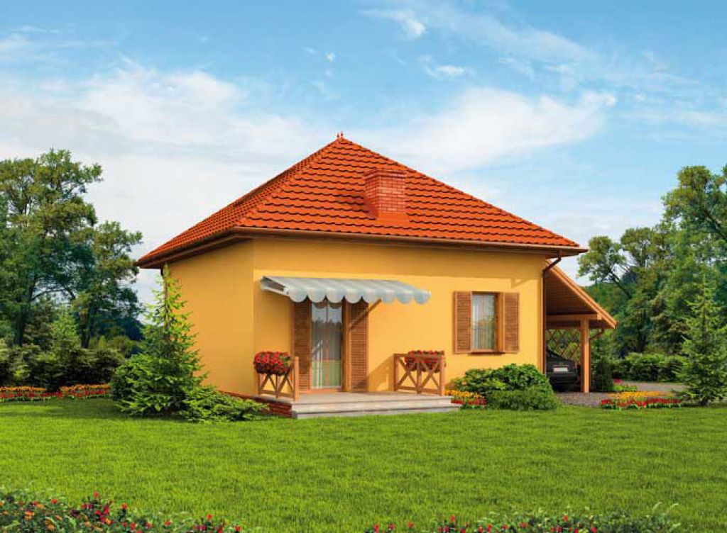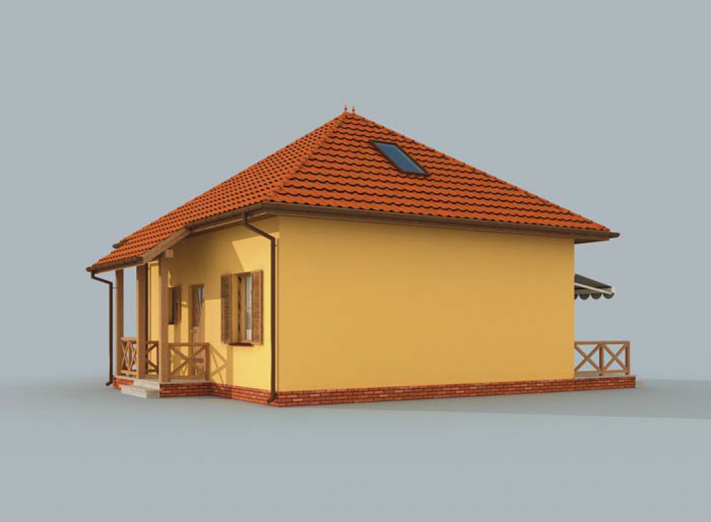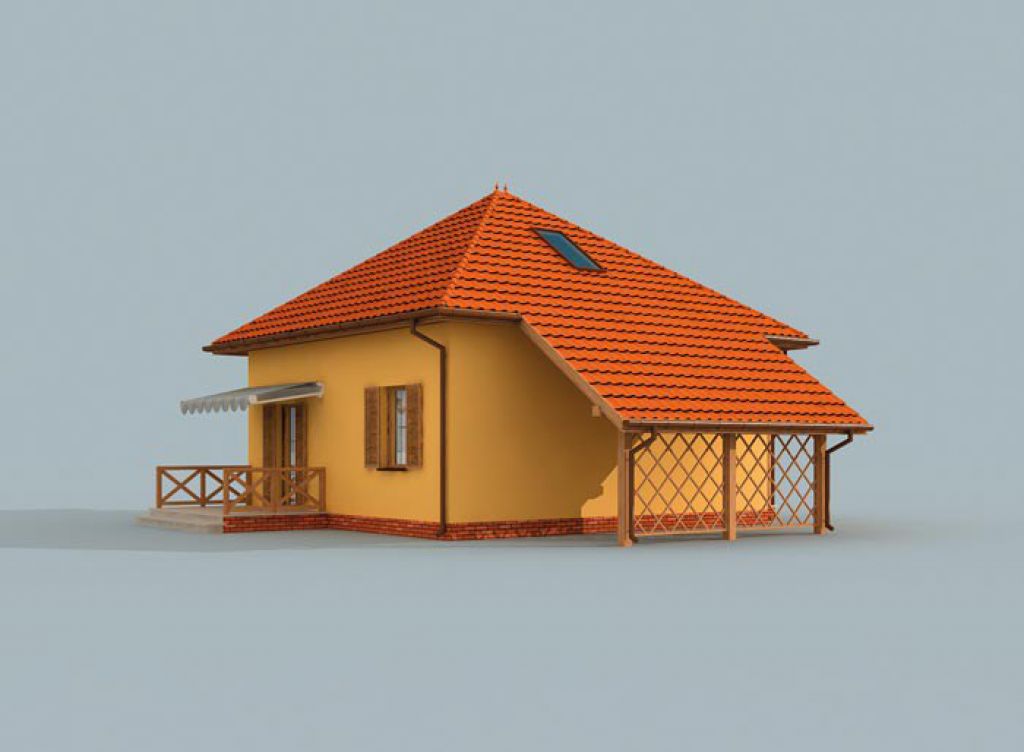 Ponúkame Vám na predaj projekt dvojpodlažného drevodomu určený pre stredne veľkú rodinu. Disponuje dvomi samostatnými izbami a obývacou izbou čiastočne prepojenou s kuchynsko-jedálenským kútom. Z obývacej izby je výstup na terasu. Jedna zo spacích izieb je na prízemí, druhá v podkroví. Z boku domu je naprojektovaný prístrešok pre auto. Celá vnutorná dispozícia je bez nosných stien, rozloženie priečok je teda menné. Viac projektov nájdete na real-corp.sk.