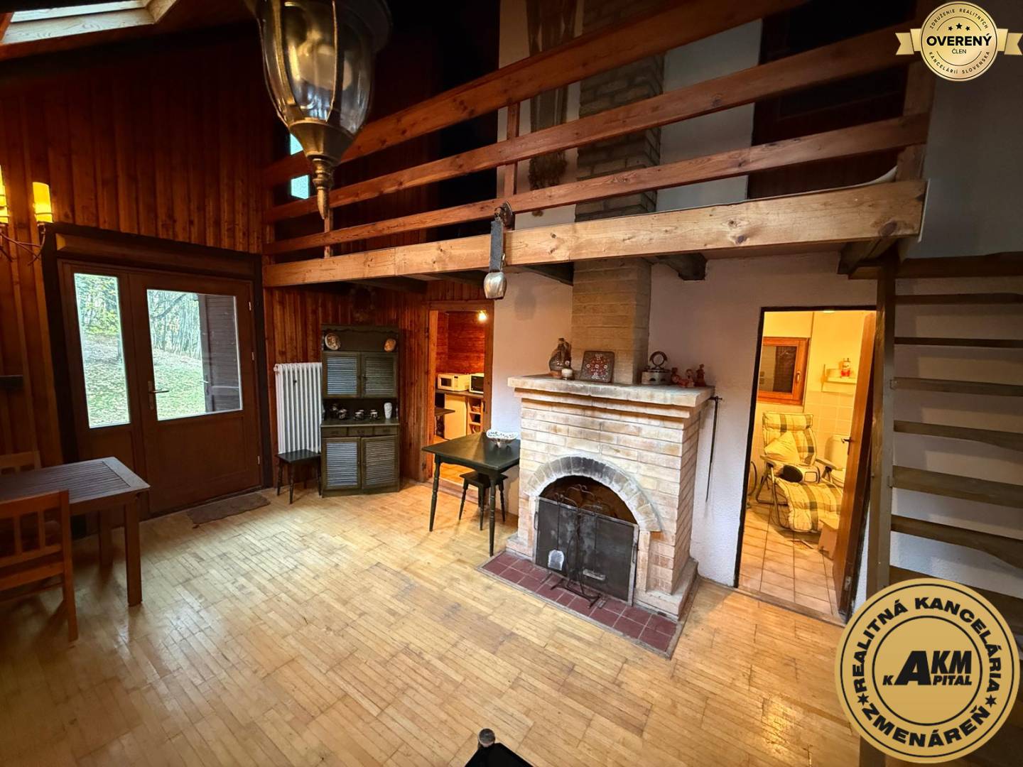 Privíta vás priestranná spoločenská miestnosť s krbom, ktorý vykúzli nezabudnuteľnú atmosféru počas chladných večerov. Nechýba praktická kuchyňa so špajzou a kúpeľňa so sprchovým kútom a WC.
