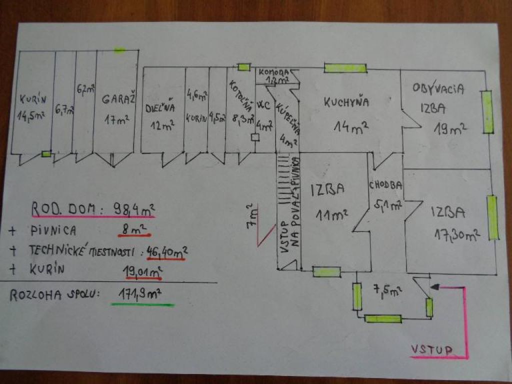 Úžitková plocha murovaného rod. domu 98,4m2 + pivnica 8m2.