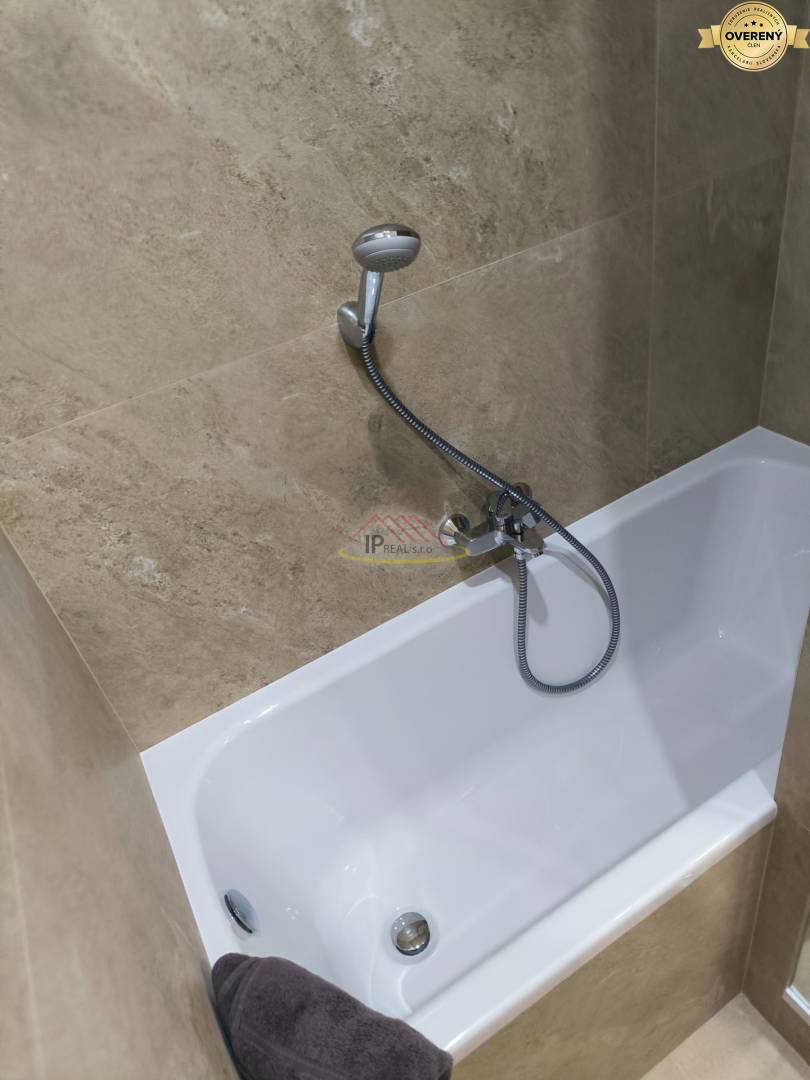 - nová sanita v kúpeľni, kde je vaňa ako aj i sprchový kút, nové moderné obklady a dlažba