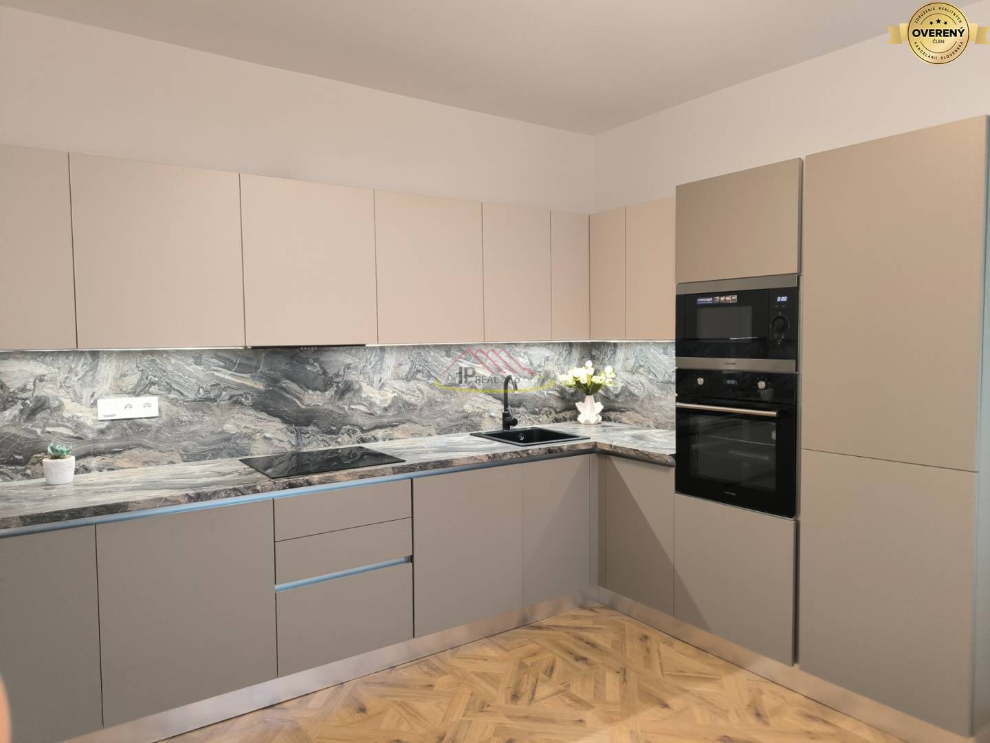- moderná kuchynská linka je vybavená všetkými zabudovanými spotrebičmi – elektrická teplovzdušná rúra, elektrická sklo-keramická varná doska, digestor, zabudovaná chladnička s mrazničkou, umývačka riadu, zabudovaná práčka