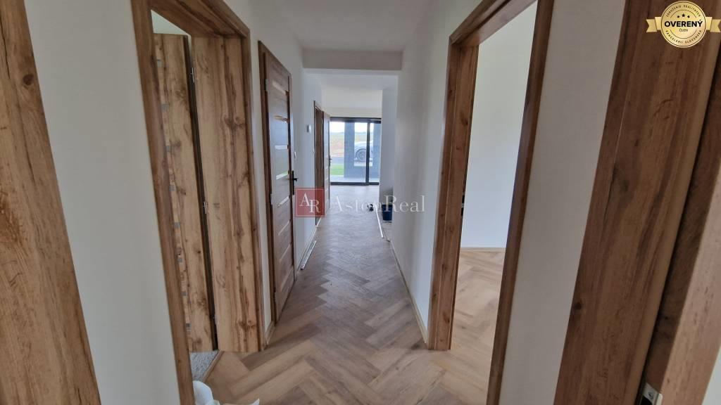 novostavbu RD - bungalov v blízkosti Popradu - Veľký Slavkov. Ide o novú ulicu v blízkosti električky, s prekrásnym výhľadom na Vysoké Tatry. Ulica má asfaltovú cestu, verejné osvetlenie. Dom sa predáva v stave ukončenia, okrem kuchynskej linky. Kúrenie je podlahové - tepelné čerpadlo, vinylové podlahy, voda- verejný vodovod, odpad - ČOV. Dom má dennú časť na južnej slnečnej strane, izby sú na západnej strane, zo spálne je vstup do kúpeľne, kde je wc sprcha umývadlo. Potom je ešte jedna samostatná kúpelňa s WC. Dom pozostáva z 3 spálni a obývacej miestnosti s kuchyňou, odkiaľ je východ na veľkú terasu. V dome sú 2 kúpeľne. V dome je technická miestnosť, kde je tepelné čerpadlo. Dom je zateplený.