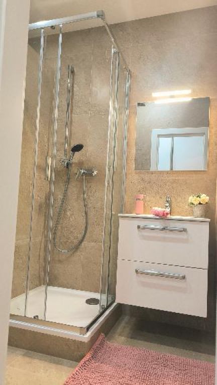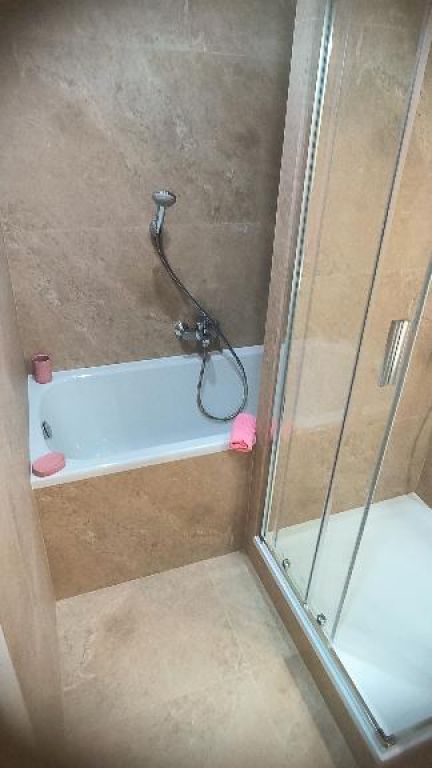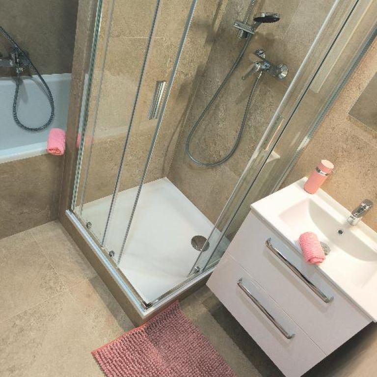- hneď vedľa WC je samostatná kúpeľňa, ktorá je vybavená vaňou, sprchovým kútom umývadlom, skrinkou pod umývadlom, moderným zrkadlom,