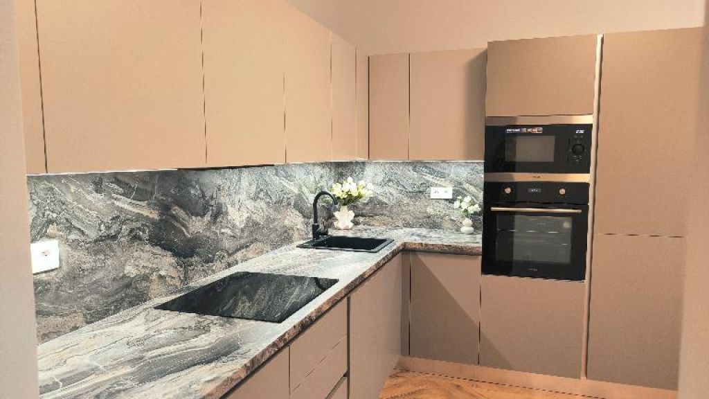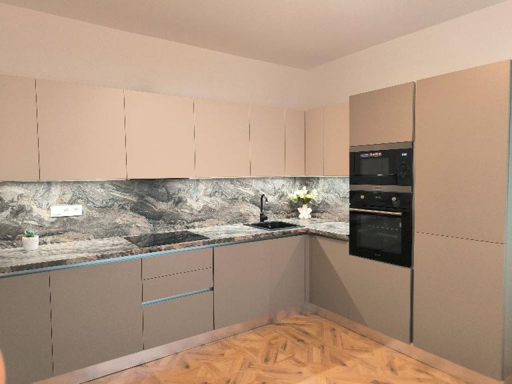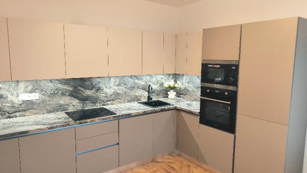 - moderná kuchynská linka je vybavená všetkými zabudovanými spotrebičmi – elektrická teplovzdušná rúra, elektrická sklo-keramická varná doska, digestor, zabudovaná chladnička s mrazničkou, umývačka riadu, zabudovaná práčka