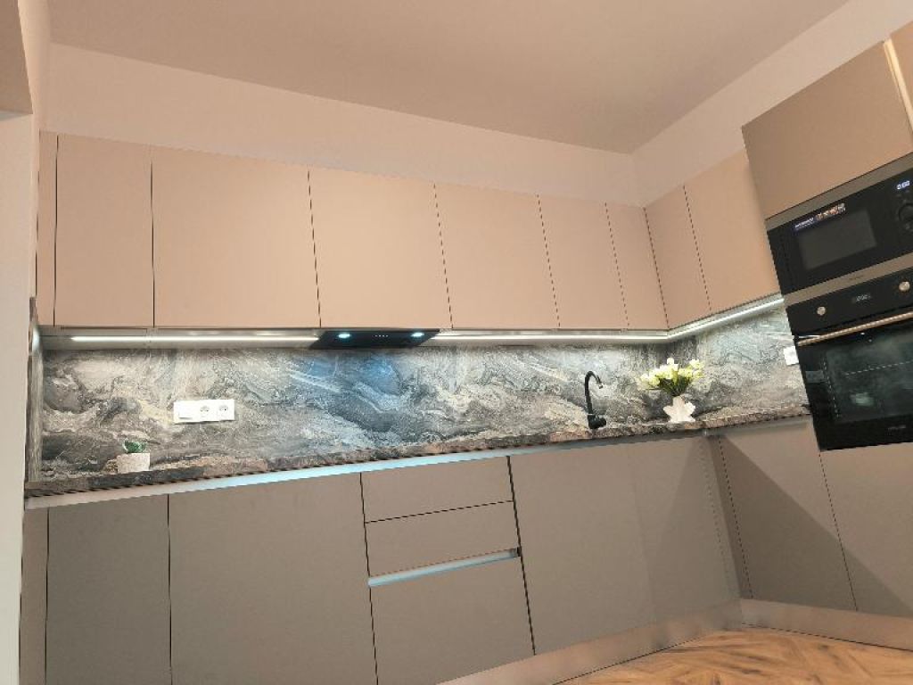 - v celom byte sú nainštalované nové svietidlá, bodové osvetlenie a LED podsvietenia – pod zrkadlom v kúpeľni ako aj pod kuchynskou linkou, čo priestoru dodáva moderný a útulný nádych