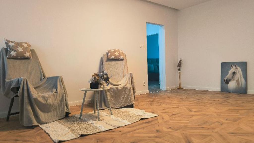 - nové moderné plávajúce podlahy v izbách a na chodbe v imitácii drevených parkiet