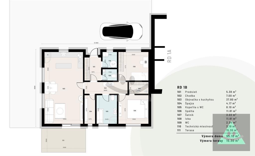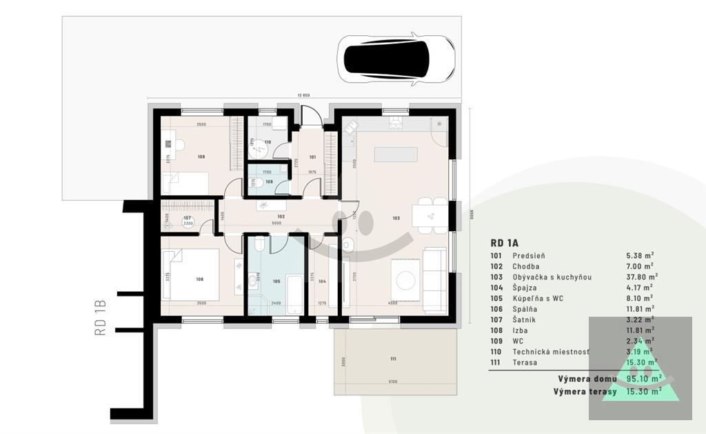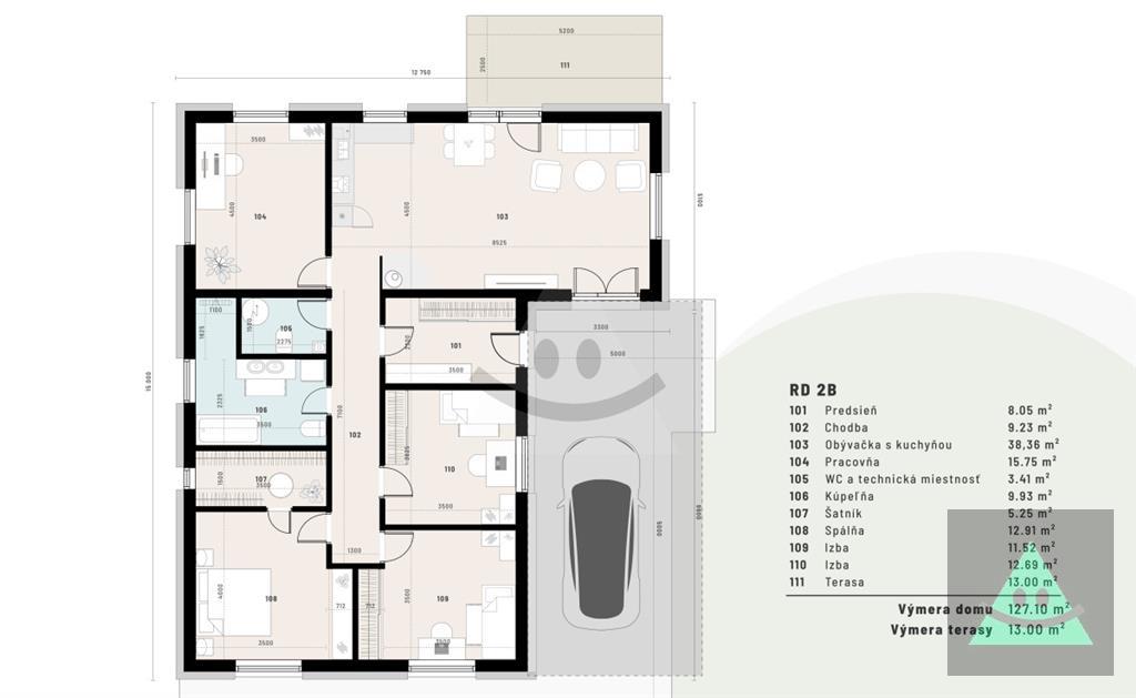 3-izbový (od 250 000 €) – pozemok 457 m2 • úžitková 95 m2 • zastavaná 129 m2 (s terasou) • obývačka s jedálňou, kuchyňa so špajzou, spálňa so šatníkom, detská izba • kúpeľňa + samostatné WC • technická miestnosť • elektrické podlahové kúrenie • žumpa • parkovanie pred domom.